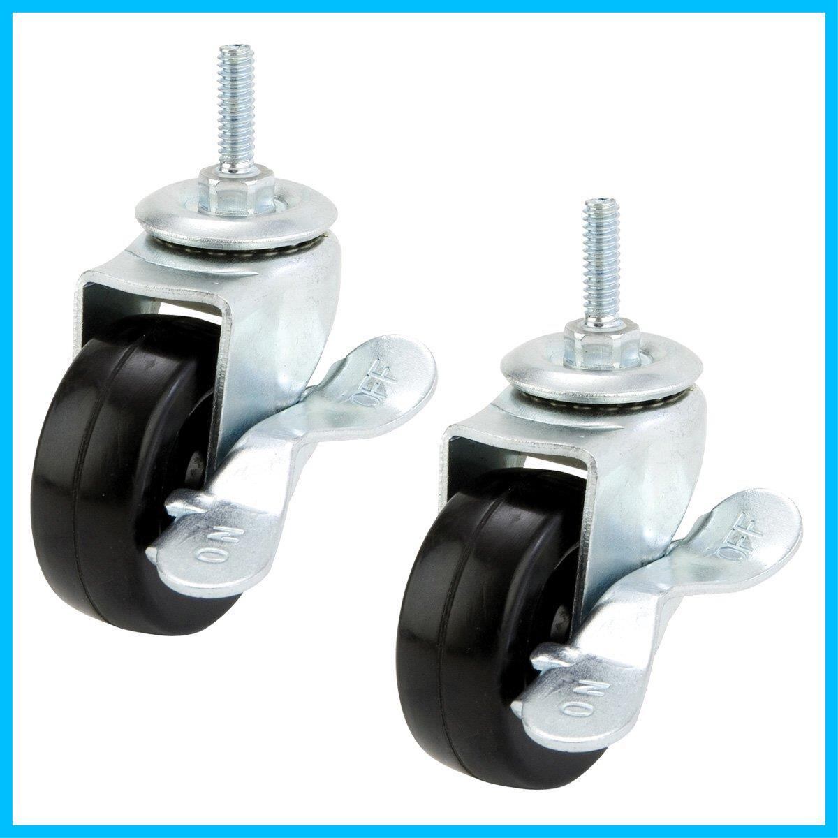 【在庫処分】ドウシシャ ルミナス スチールラック足回りパーツ ネジ式ゴムキャスター 2個セット CT-GL50 固定ストッパー付き 車輪径50mm 高さ6.7cm キャスター静止時耐荷重200kg ポール径19mm 業務現場 厨房 滑らかな動き 静音