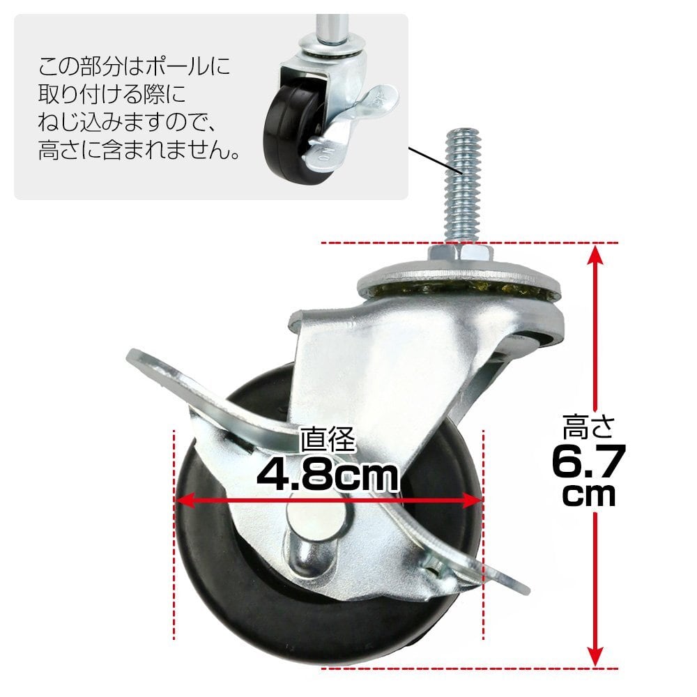 ●キャスター各種、三角プレート脚、円形アジャスターの高さサイズは、ポールにねじ込む「ネジ切り部」は含まれていません。高さサイズは六角ナット上面から床設置面までの寸法になります