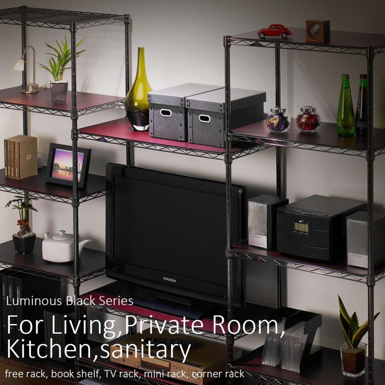 【特価商品】ドウシシャ ルミナス ブラック 幅60 3段 スチールラック 収納棚 艶のある黒色 幅59.5×奥行34.5×高さ51cm 全体耐荷重180kg 頑丈 キャスター付き 防錆加工 ポール径19mmパーツ対応 シェルフ TV収納 テレビラック BN5160-3