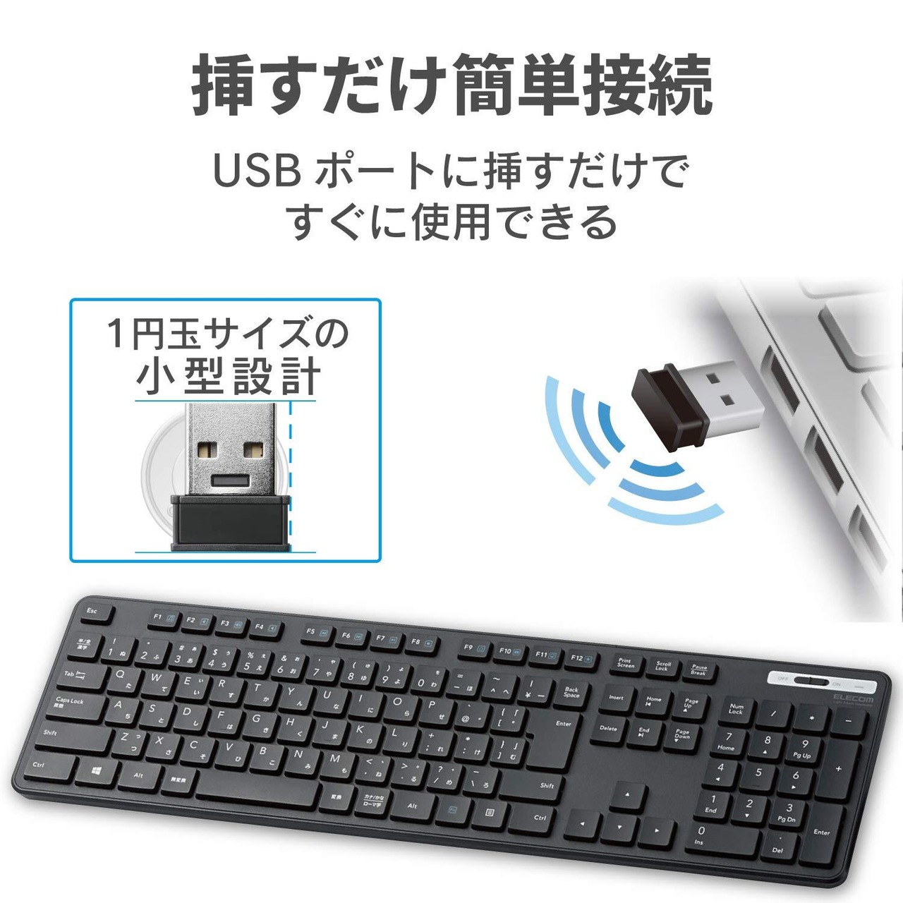 エレコム ワイヤレスキーボード メンブレン 薄型 フルキーボード テンキー ブラック TK-FDM110TXBK