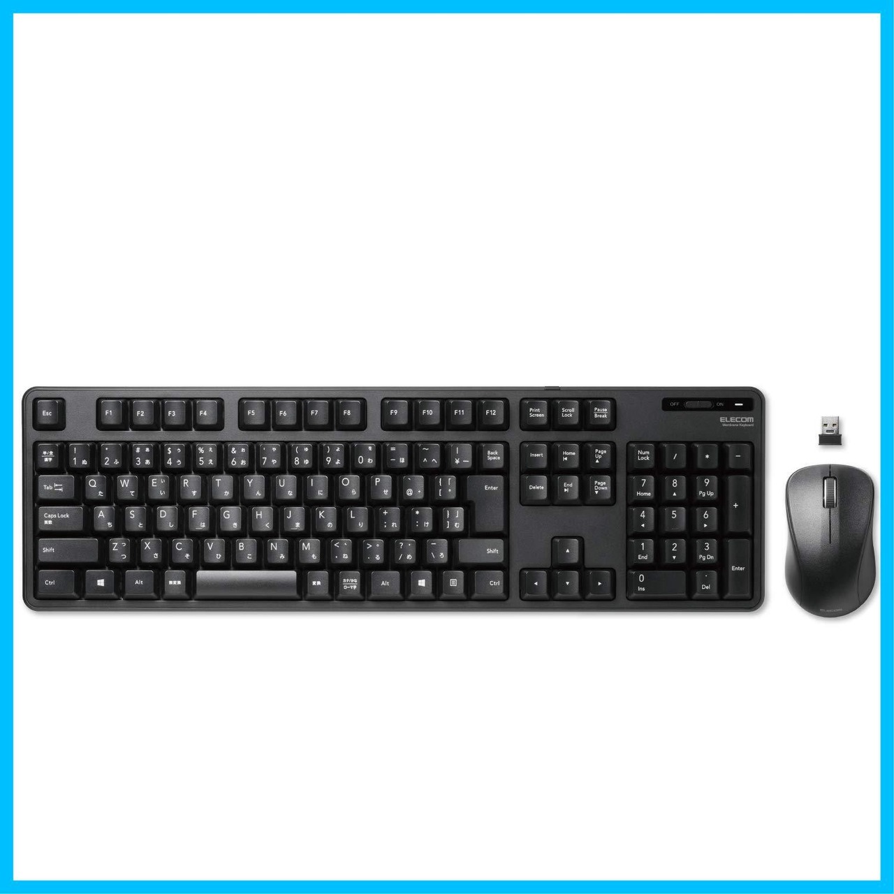 【特価セール】エレコム キーボード 【マウスセット】 ワイヤレス (レシーバー付属) メンブレン フルキーボード ブラック TK-FDM106MBK