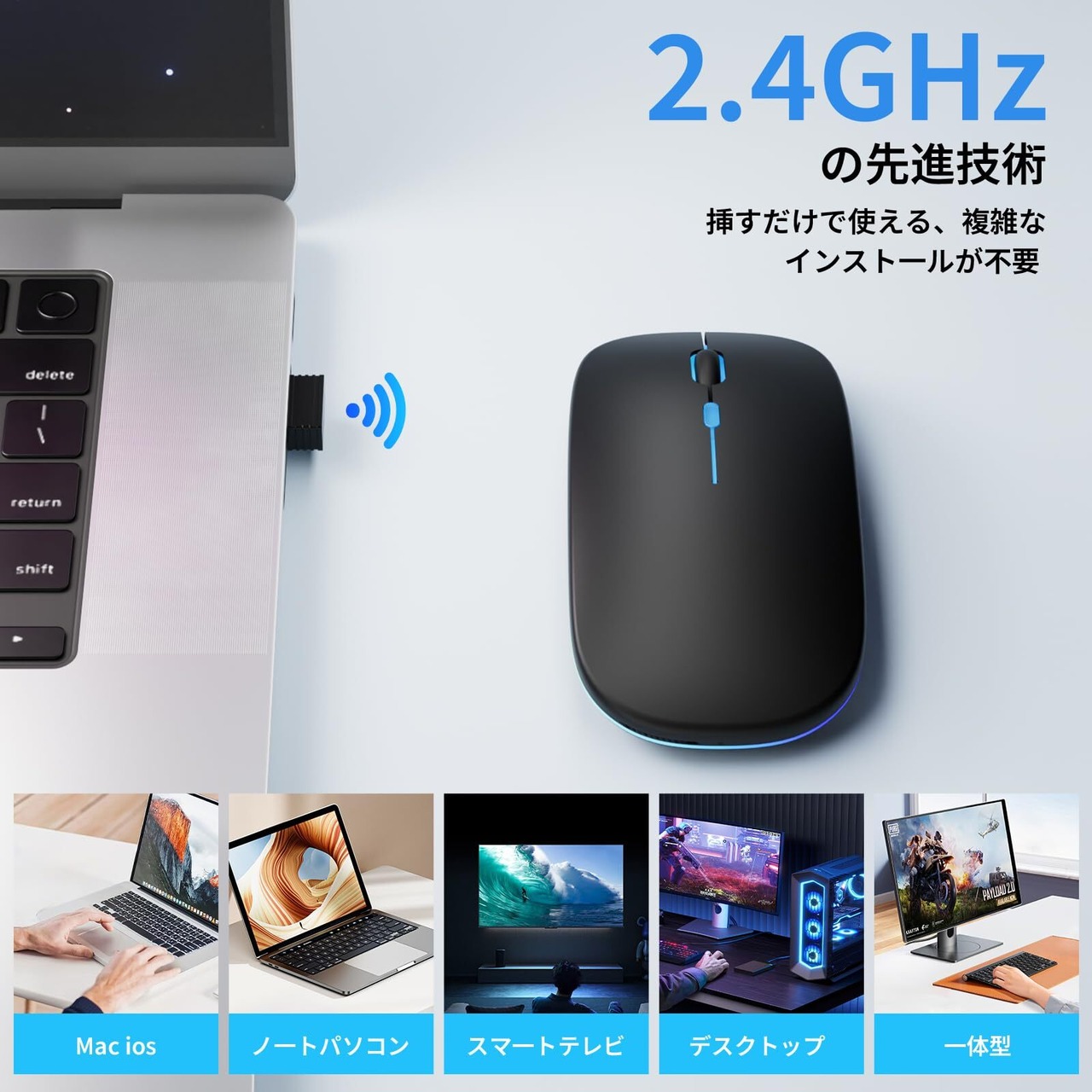 【2.4GHz対応&簡単接続】充電式マウスは成熟した2.4GHz接続技術を採用し,は安定した接続、正確なスキャン、高速データ転送が可能になります,最大動作距離は10Mで。複雑な接続手順を必要とせず、簡単かつ迅速にコンピューターに接続し,付属の接続端子をパソコンのUSB接続口に差し込むことで接続完了。作業を効率化するワイヤレス マウスです。