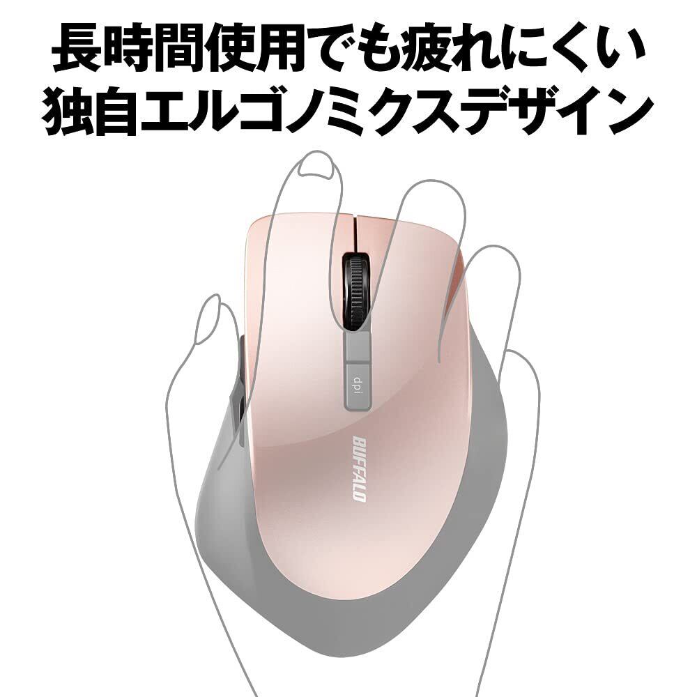 バッファロー マウス 無線 ワイヤレス 静音 5ボタン 【戻る/進むボタン搭載】dpi切替 BlueLED ベージュピンク BSMBW325BP