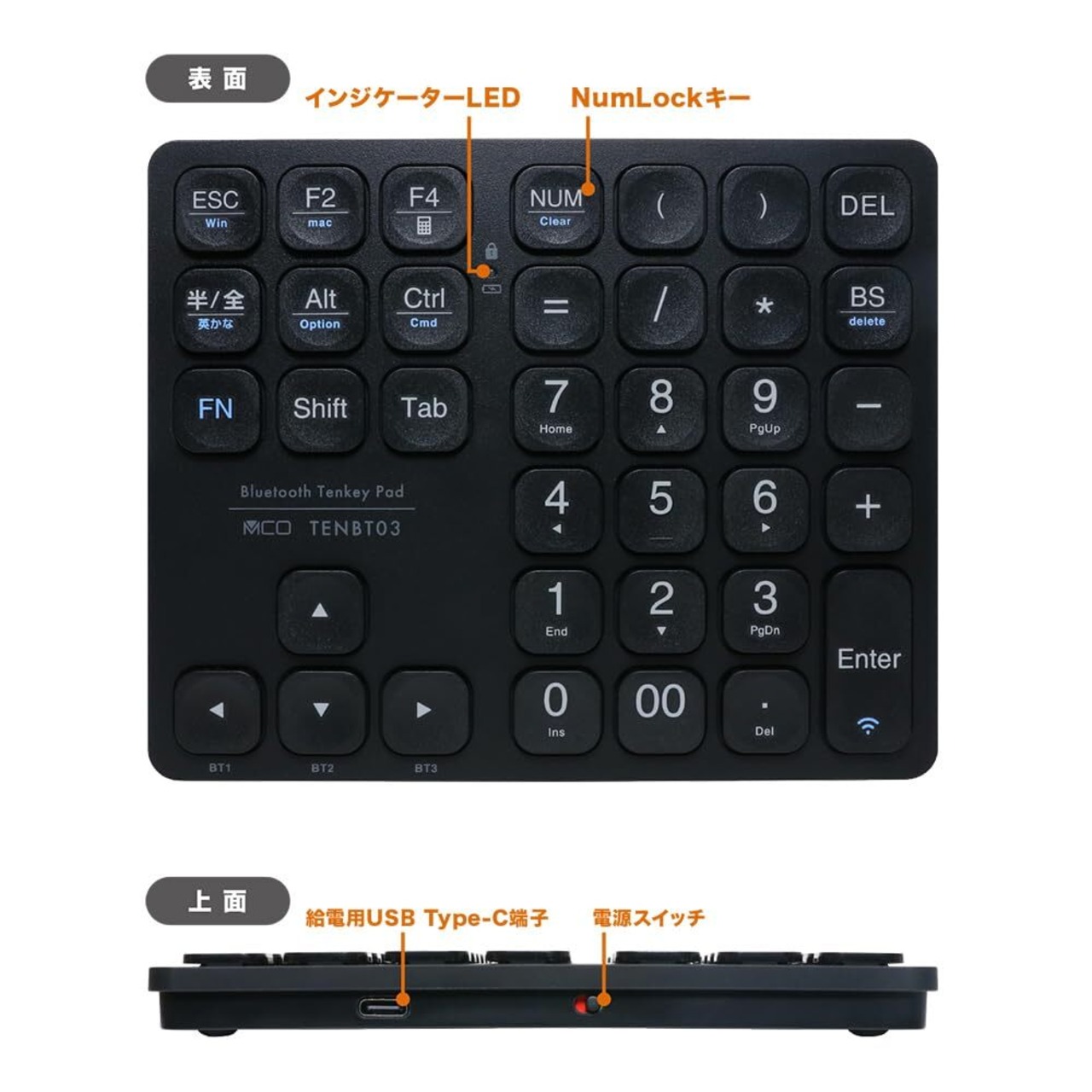 【在庫セール】MCO Bluetooth 十字キー付き ワイヤレス テンキー ブラック Z1708