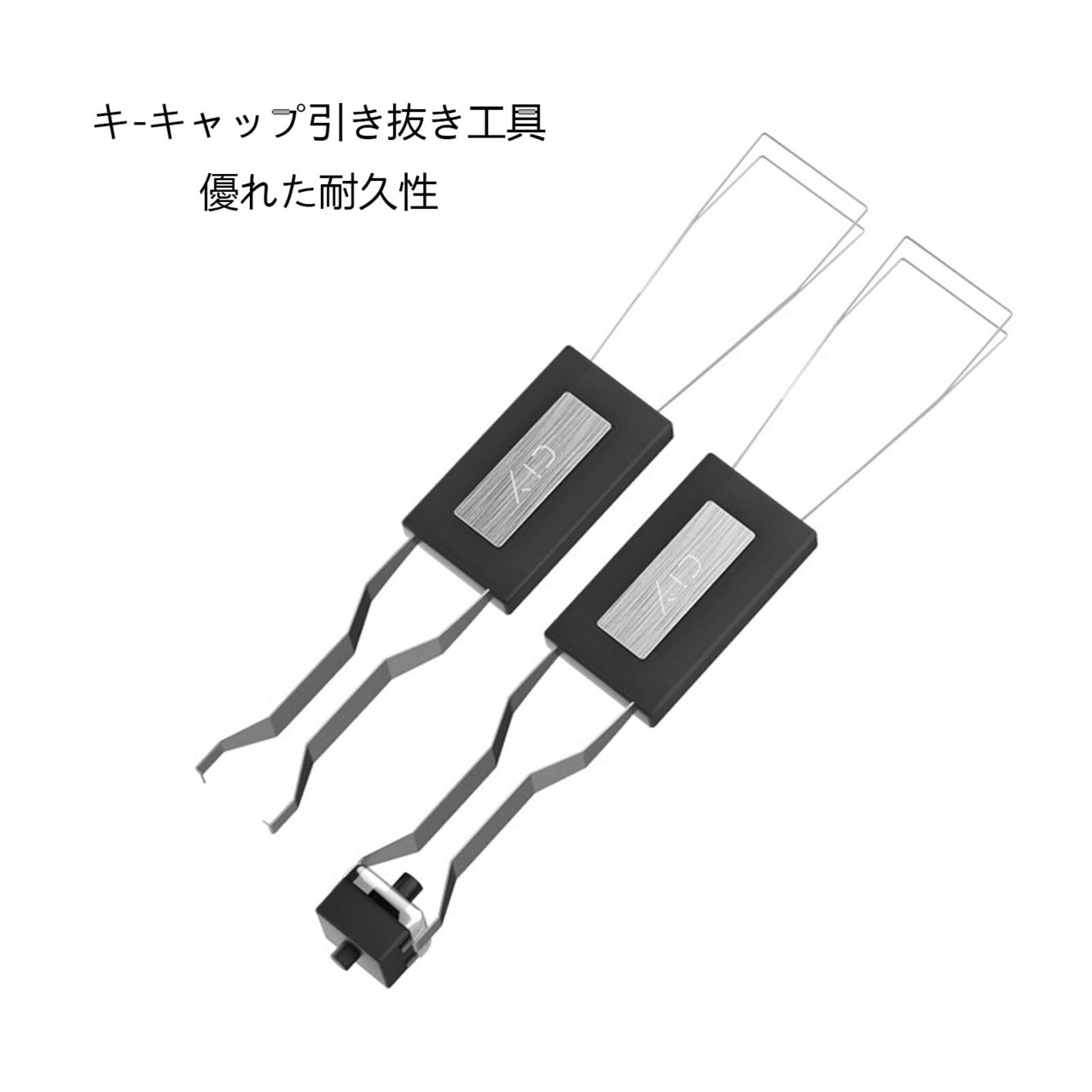 【取り外し簡単】 キーをつかんで取り出すためのプラスチック製のハンドルがあり、取り外しが簡単です。 キーキャップは2本のステンレススチールワイヤーで挟まれているため、力を入れずに引き抜くことができます。 ワイヤー部に引き出されたキーキャップを3個まで収納でき、 取り外したキーキャップがなくなることを防ぎます。