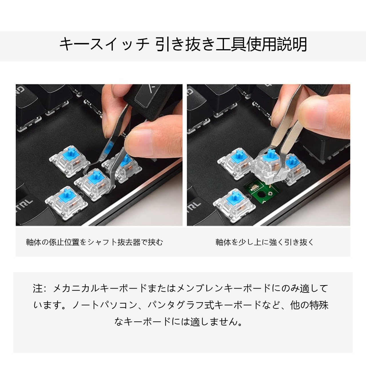 メカニカルキーボード 2in1 両用 キートップ引抜工具 メンテナンス用 工具 キーキャッププラー キースイッチ ステンレススチール キーキャップ キートップ 引き抜き工具 キーボードメンテナンス(キーキャップ&キースイッチ両用)