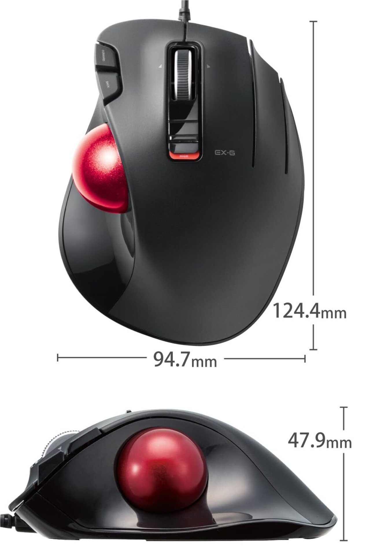 エレコム USB トラックボールマウス 5ボタン + 減速スイッチ + チルト機能 有線 赤色ボール標準搭載モデル 親指操作タイプ ブラック M-XT2URBK-G