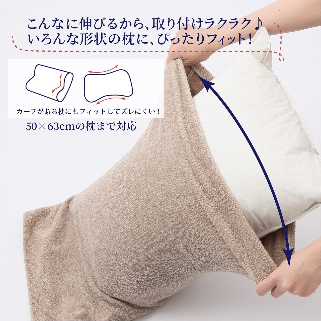 nishikawa【西川】 のびのび枕カバー Ag抗菌タイプ ベージュ 50X63cmのサイズの枕に対応 伸縮繊維なので多彩なサイズ かたちの枕にのびのびフィット やさしい肌触りのふわふわタオル パイル地 デザインが違うリバーシブルタイプ 洗える プレゼント やわらか タオル地 パイル ピローケース まくらカバー