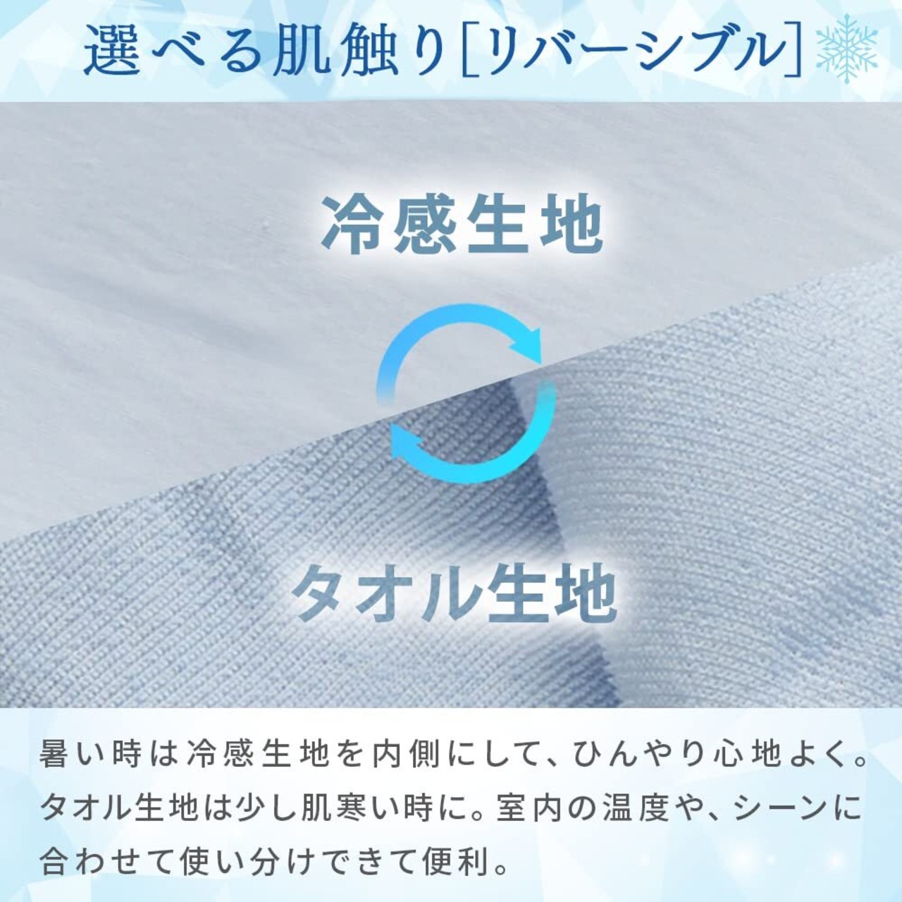 材質/表地:ナイロン100%(もっちり接触冷感)、裏地:毛羽部分/綿100%・グランド/ポリエステル100%(綿パイル)