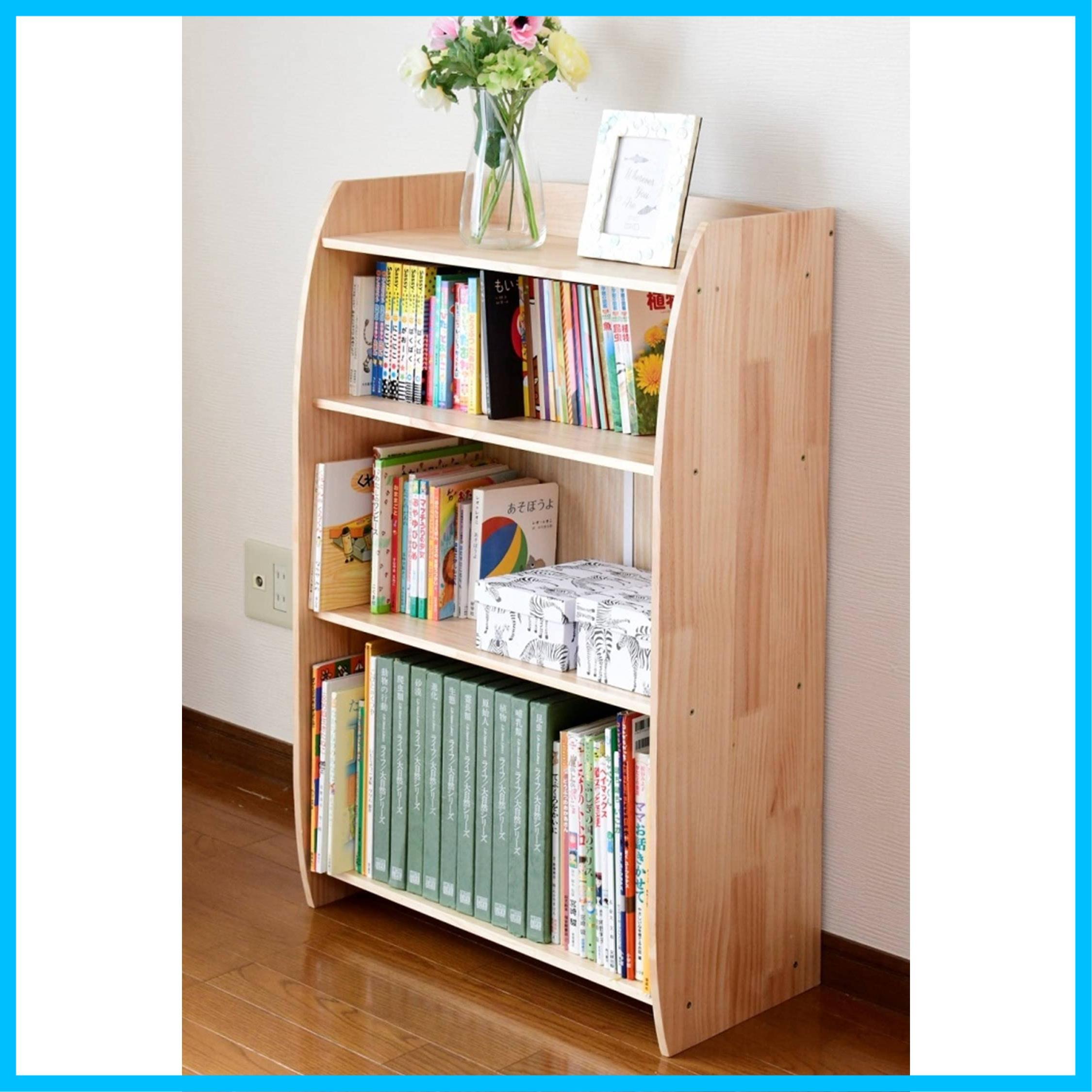 山善(YAMAZEN) 絵本棚 絵本ラック (大容量) 倒れにくい(後ろ重心設計) 収納高さ3種類 固定棚(安定感アップ) 丸みのある角 幅60×奥行30×高さ95㎝ 天然木 組立品 ナチュラル TER-9560(NA) キッズ