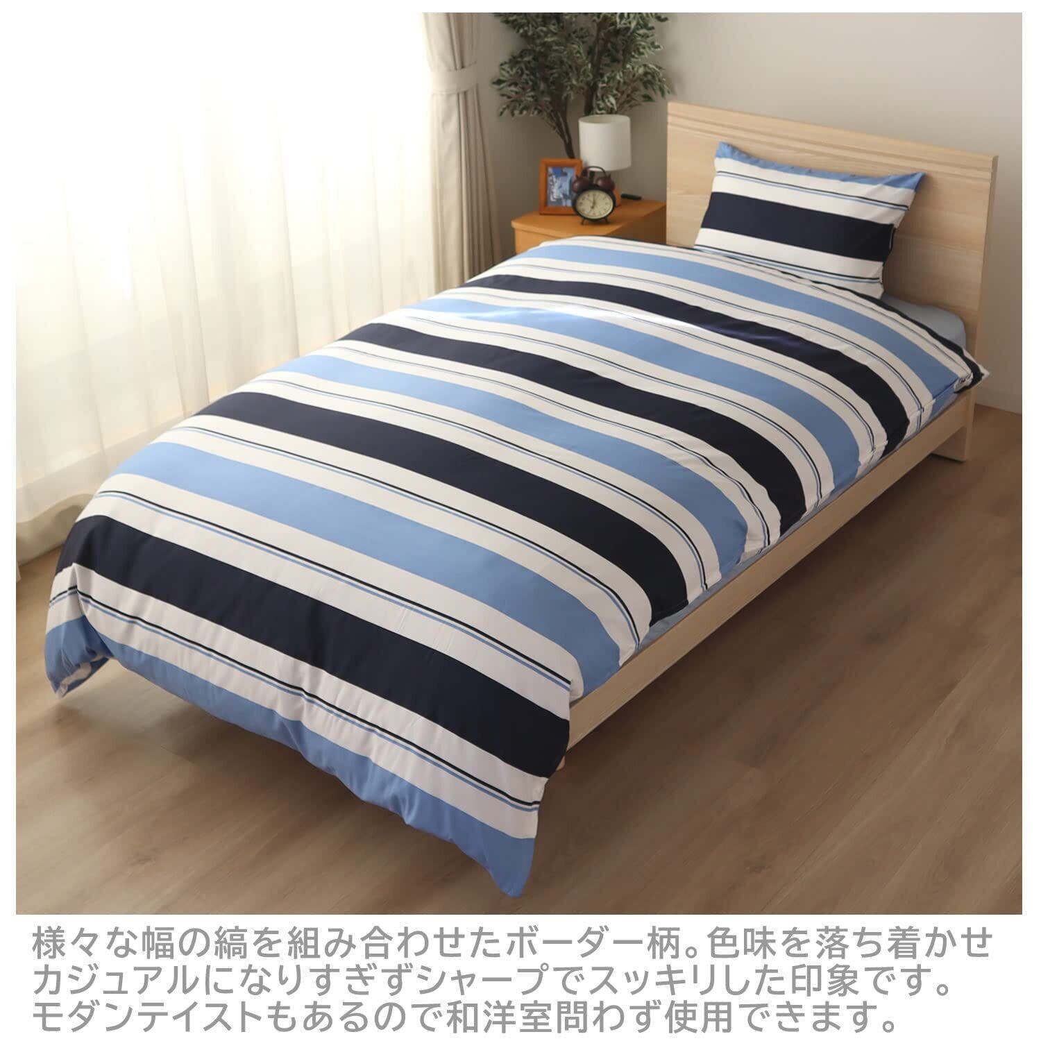 メリーナイト(Merry Night) 掛け布団カバー 「ダブルボーダー」 ネイビー シングルロング 約150×210cm 両サイドファスナー ふとんが入れやすい 洗える 速乾 シワになりにくい FF12112-72