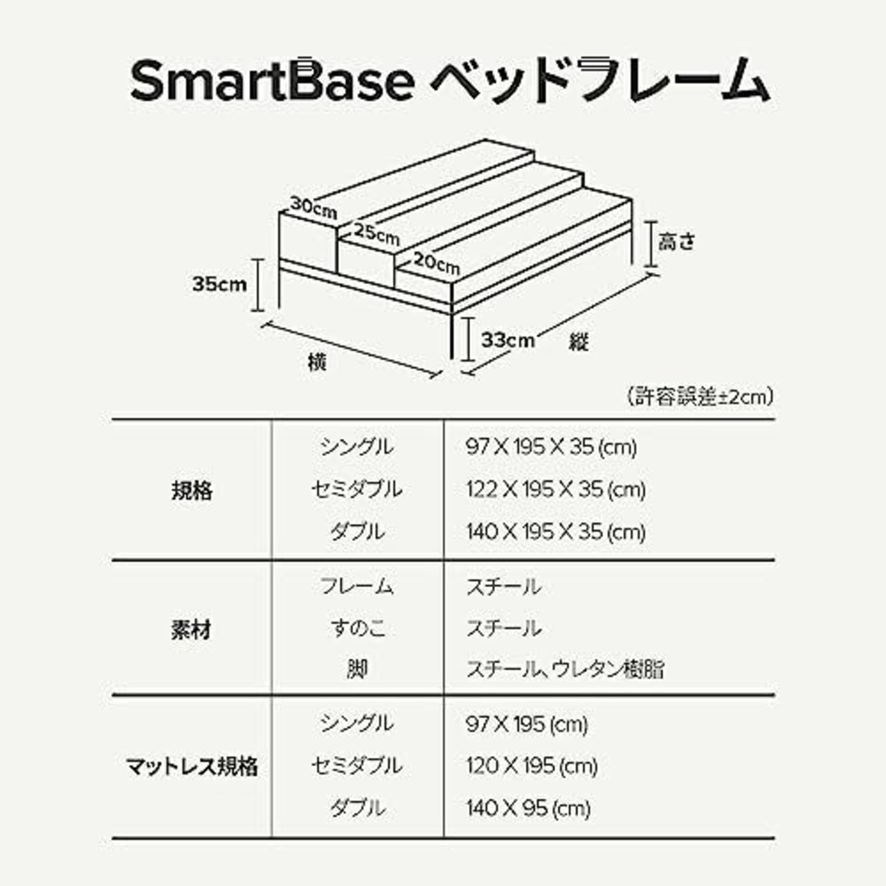 ※より長くお使いいただくため、厚さ15cm以上のベッド用マットレスを必ずご使用ください。