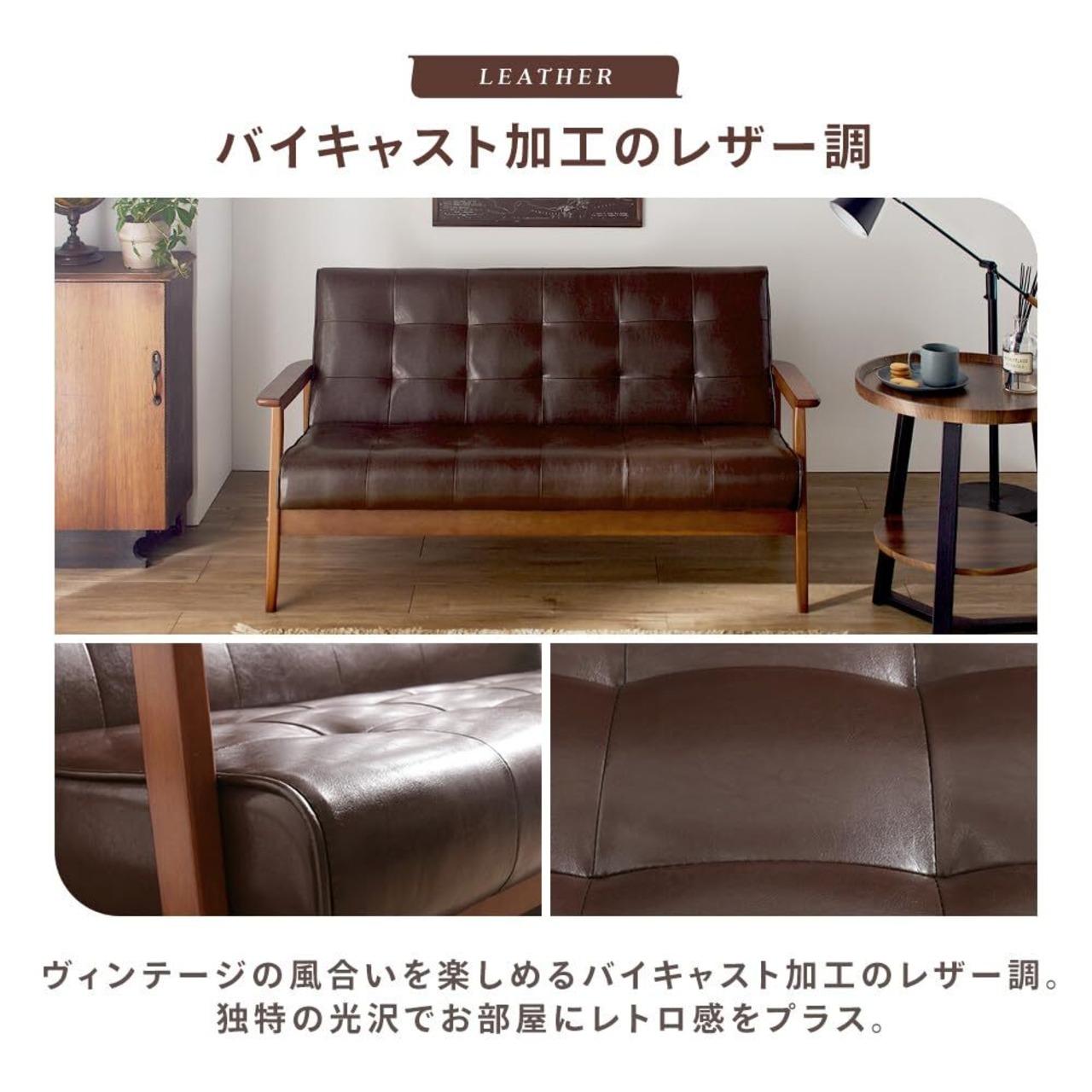 【ヴィンテージの風合いを楽しむ】レザータイプは、天然皮革の風合いに近づけるバイキャスト加工でヴィンテージテイストを楽しめる。お部屋に高級感をプラスし、どこか懐かしい雰囲気を演出。