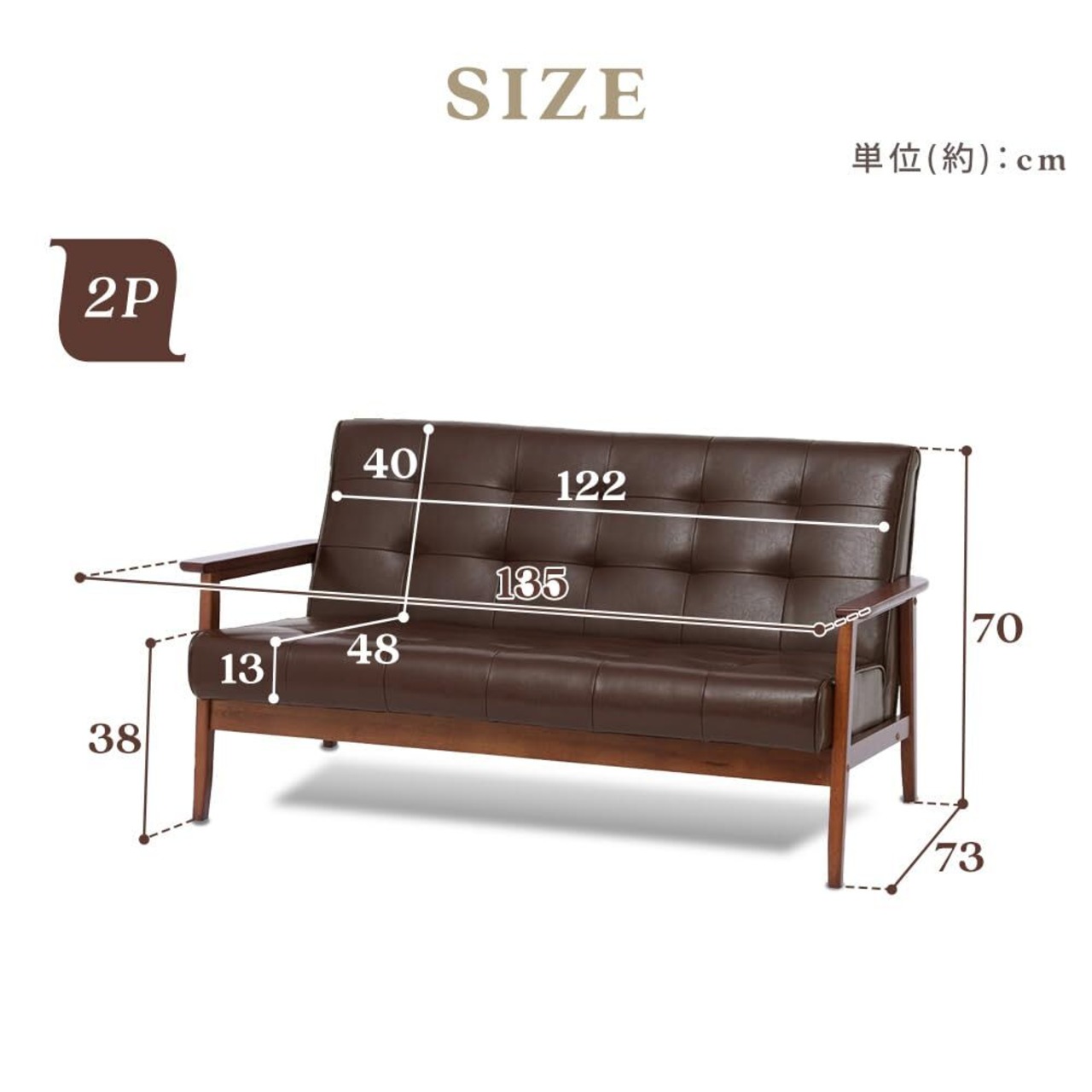 アイリスプラザ ソファ 2人掛け PU ダークブラウン 幅約135cm 72086