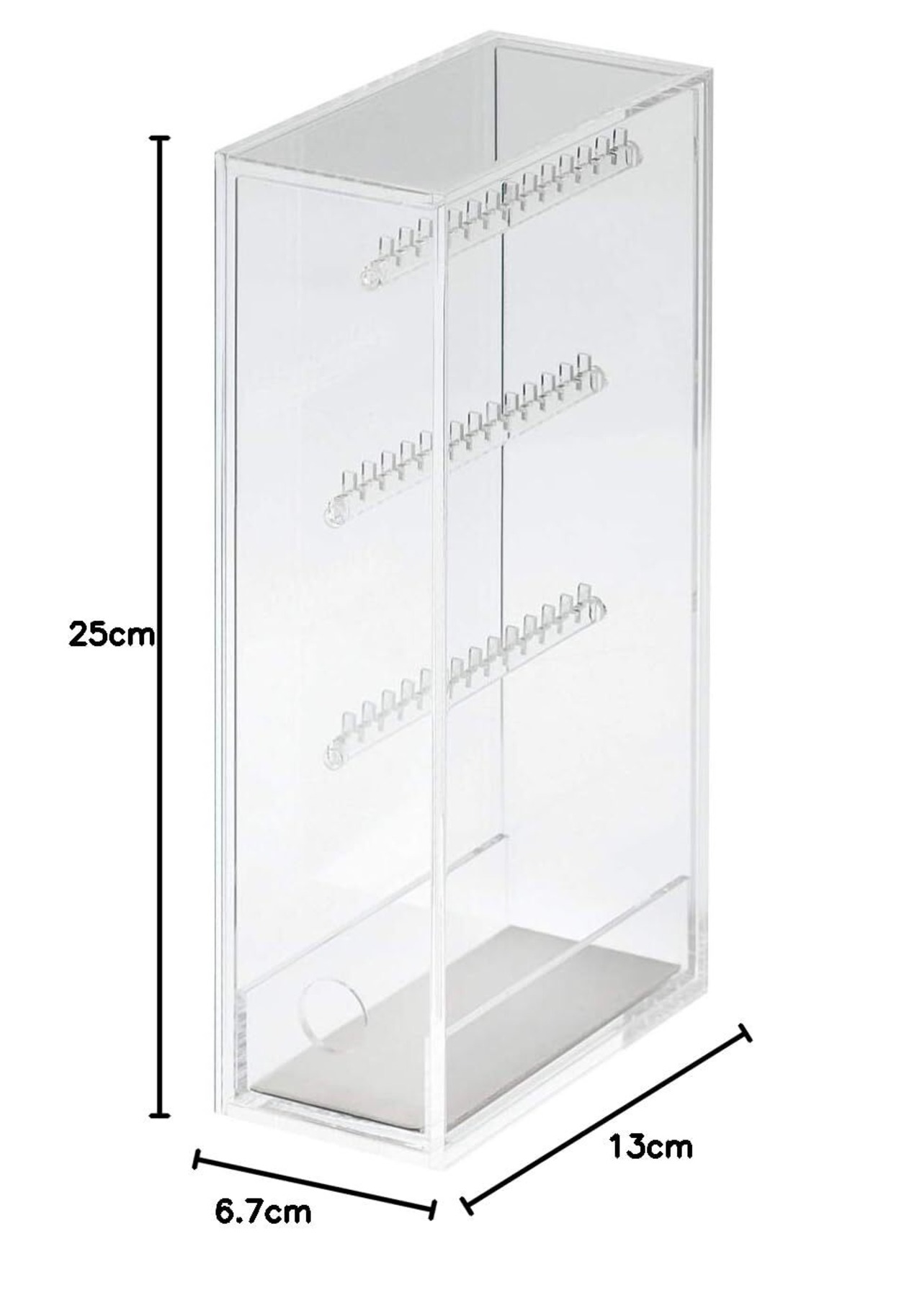 特徴:ネックレスやピアスを吊るして収納できる、スタンド型の中身が見える収納用品です。