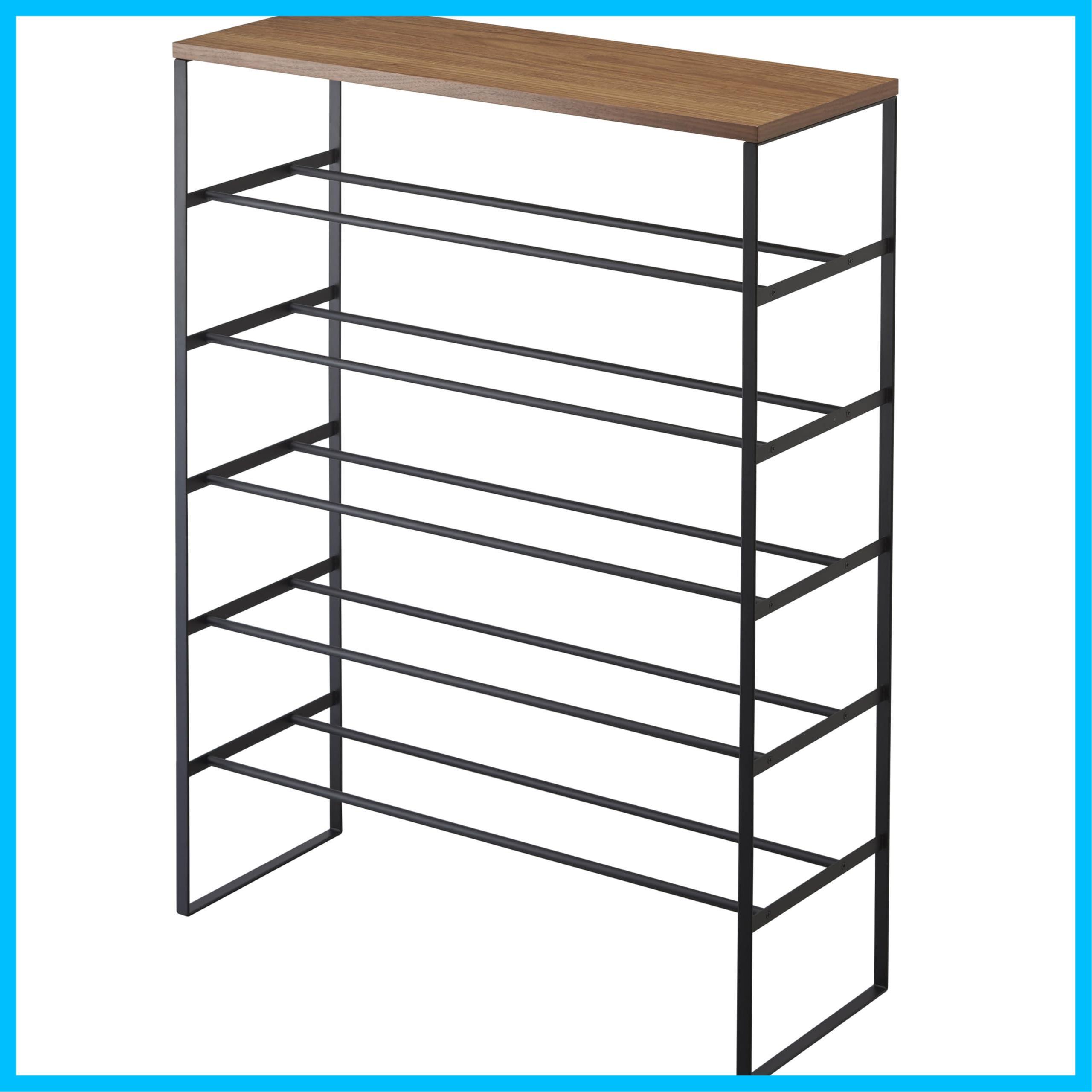 山崎実業(Yamazaki) 天板付き シューズラック 6段 ブラック 約W66×D25×H87cm タワー tower 下駄箱 靴 収納 フック付き 3370