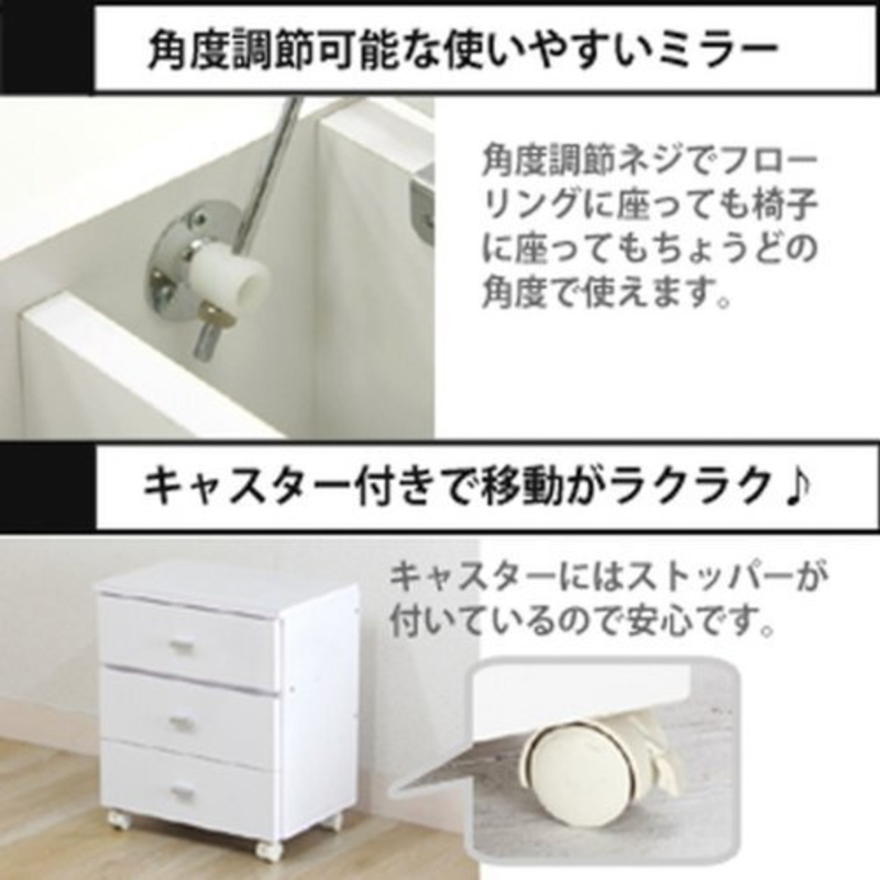 不二貿易 ドレッサー 化粧台 幅45×奥行31×高さ53cm ホワイト キャスター付き 2Way サイドテーブル 完成品 フィーゴ 81893