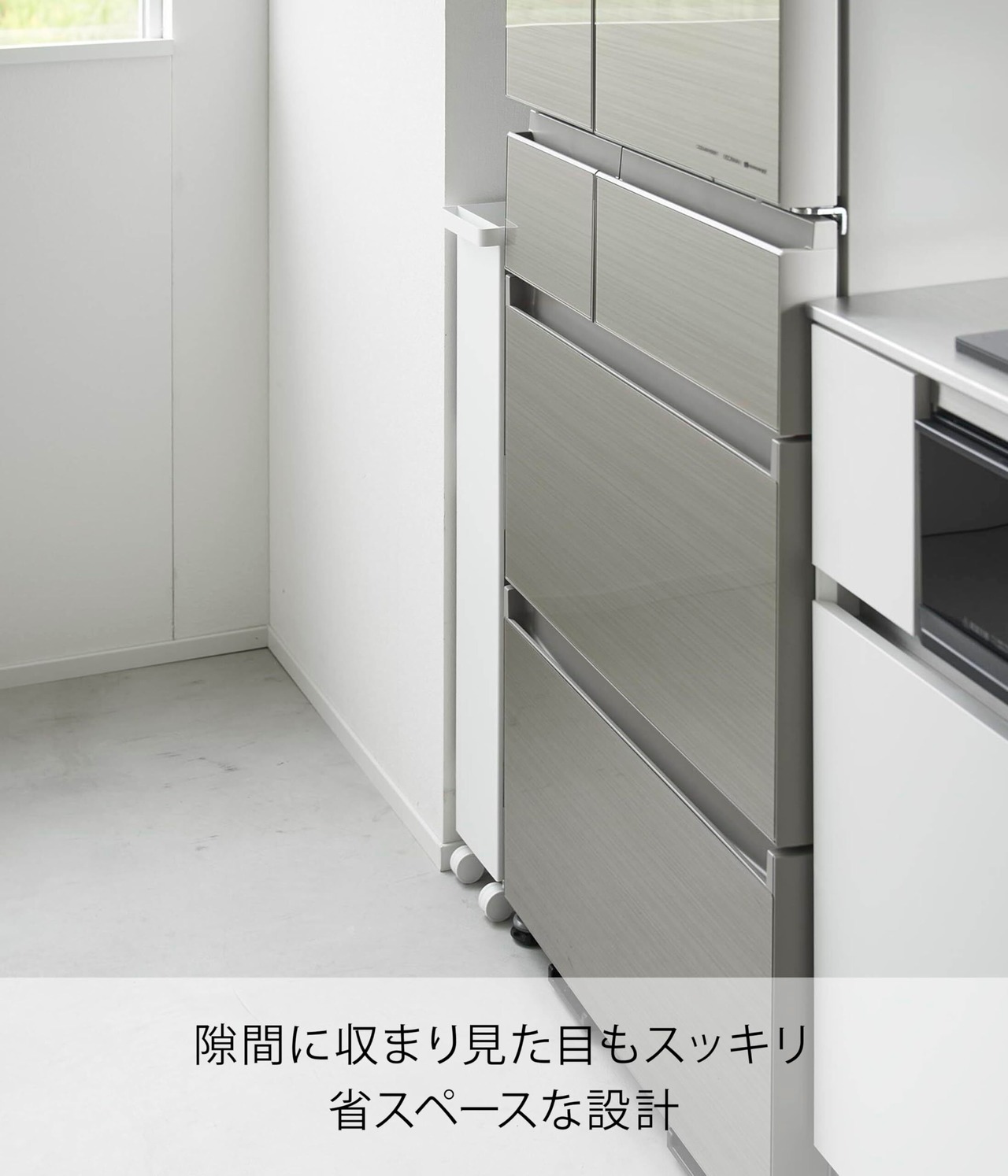 キッチン小物、ジャムや雑貨などの小さい物からペットボトルや瓶類などの大きい物まで、冷蔵庫横などの省スペースに収納できます。