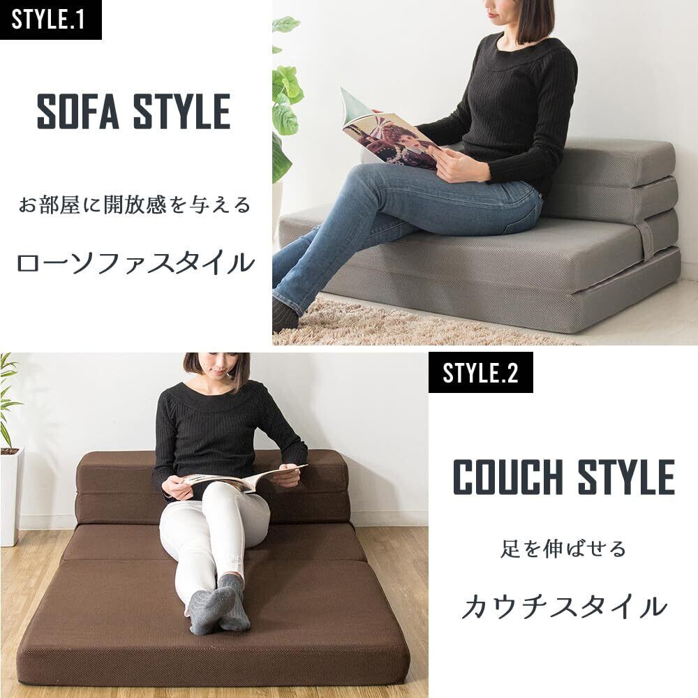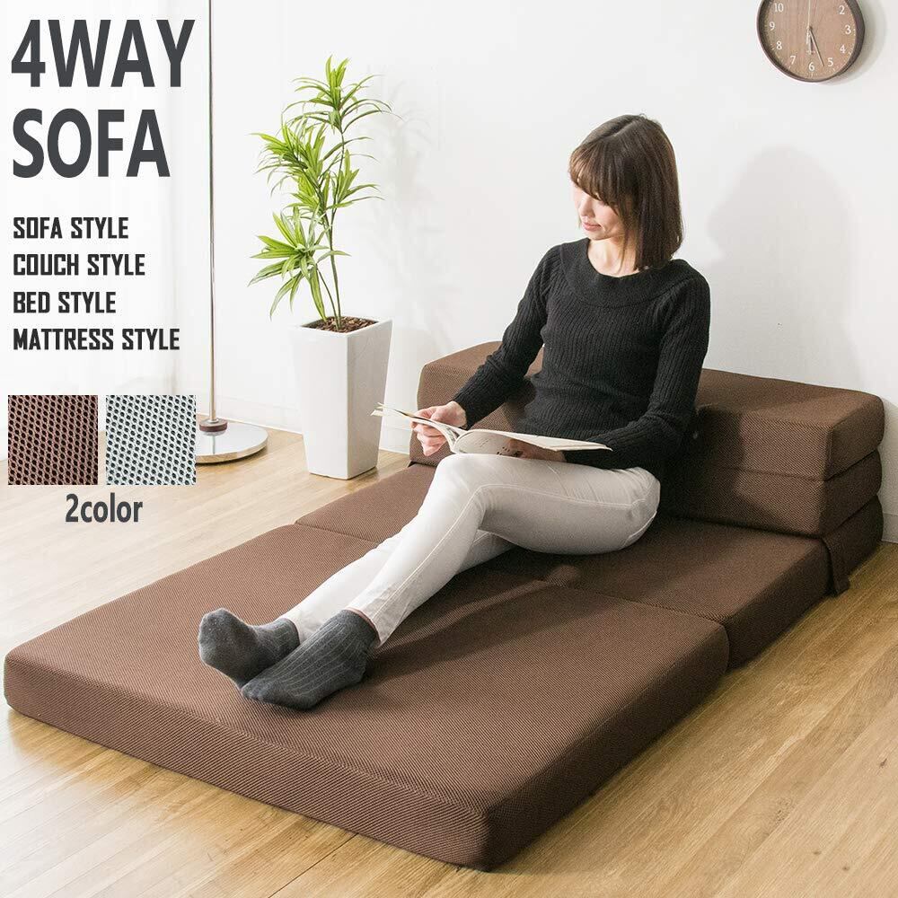 ソファ、カウチ、枕付きベッド、マットレスの4つのスタイルでお使いいただける便利な4wayソファ。