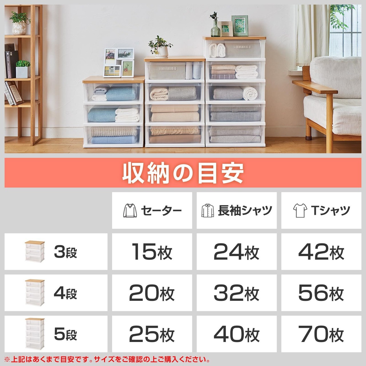 収納目安:トレーナー約6枚×3段