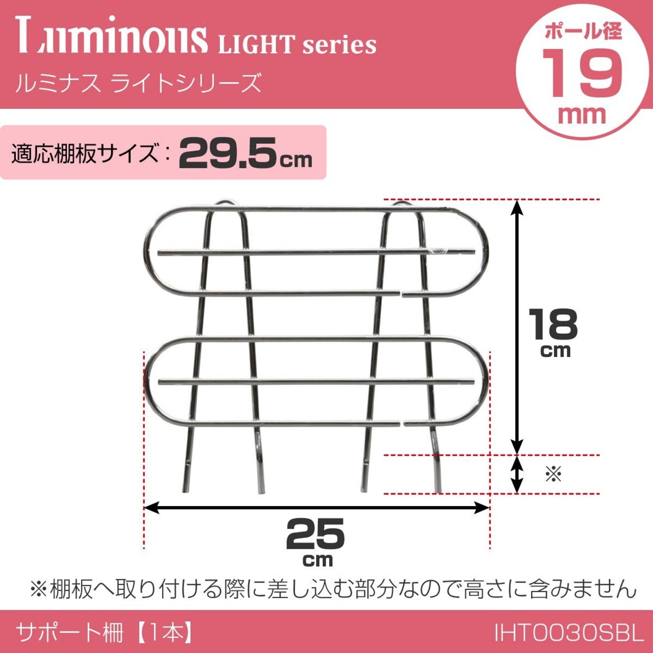 ドウシシャ ルミナス スチールラック落下防止パーツ サポート柵 幅24×高さ23cm IHT0030SBL 奥行30cmタイプ ポール径19mm 倒れない ブックスタンド ブックエンド 本立て 書類整理 文庫本 小物収納 キッチン 衣類 展示 仕切り