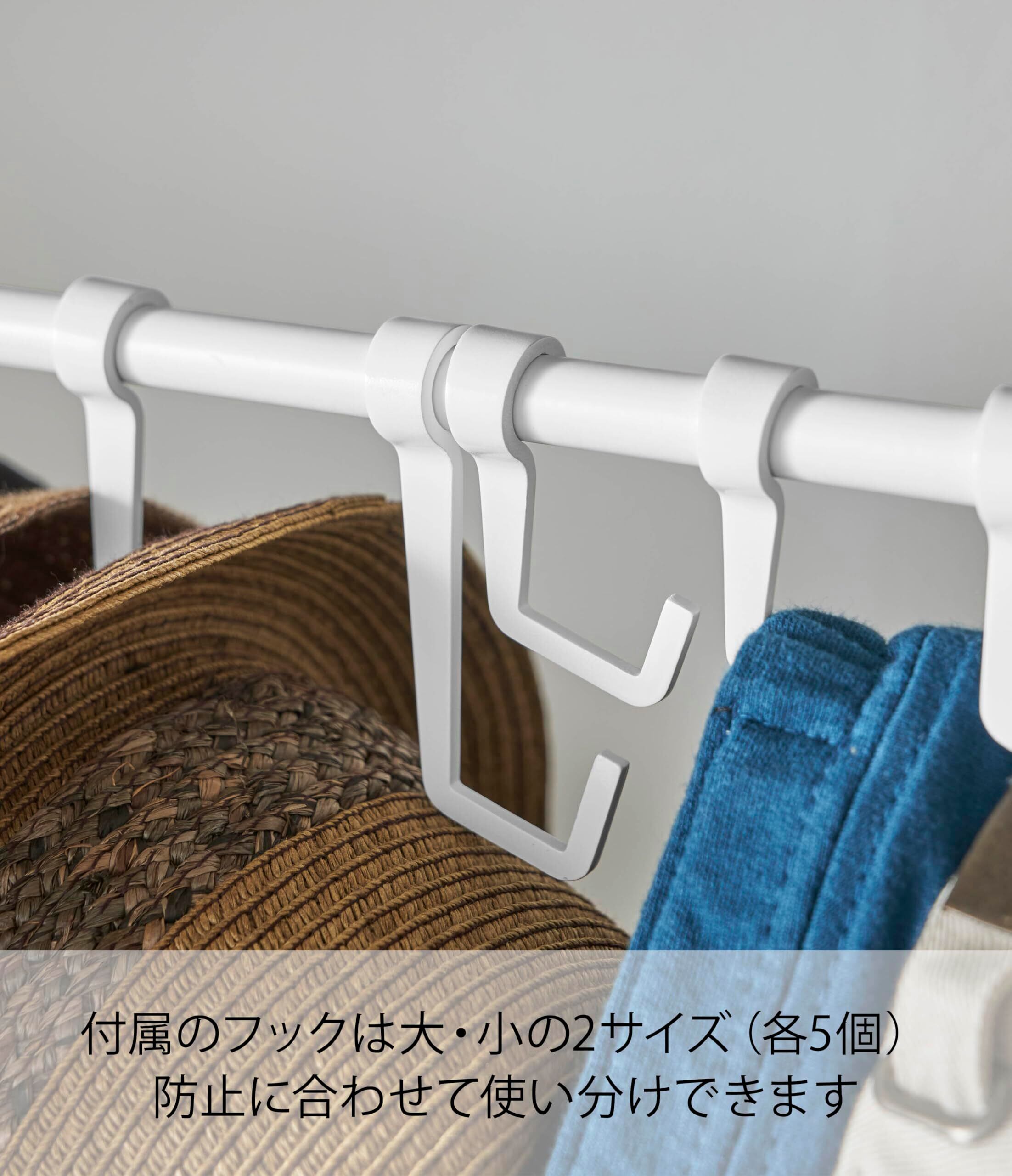 商品重量:約2400g 材質:フレーム・バー/スチール(粉体塗装),フック(大)(小)×各5/ABS樹脂