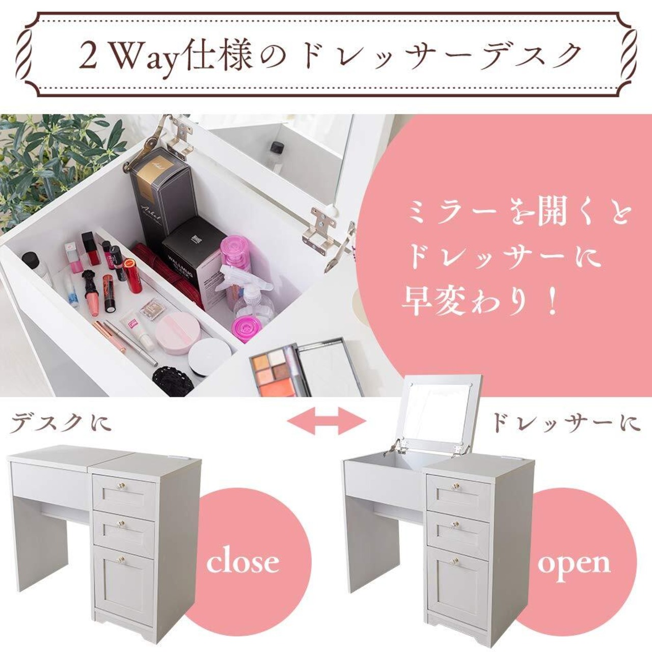 アイリスプラザ 鏡 ドレッサー 白 コンパクト 椅子 化粧台 鏡台 メイク台 収納 大容量 2口コンセント付き デスク 机 椅子付き スツール収納 2way 幅80×奥行39.5×高さ70cm(チェアセット) ホワイト