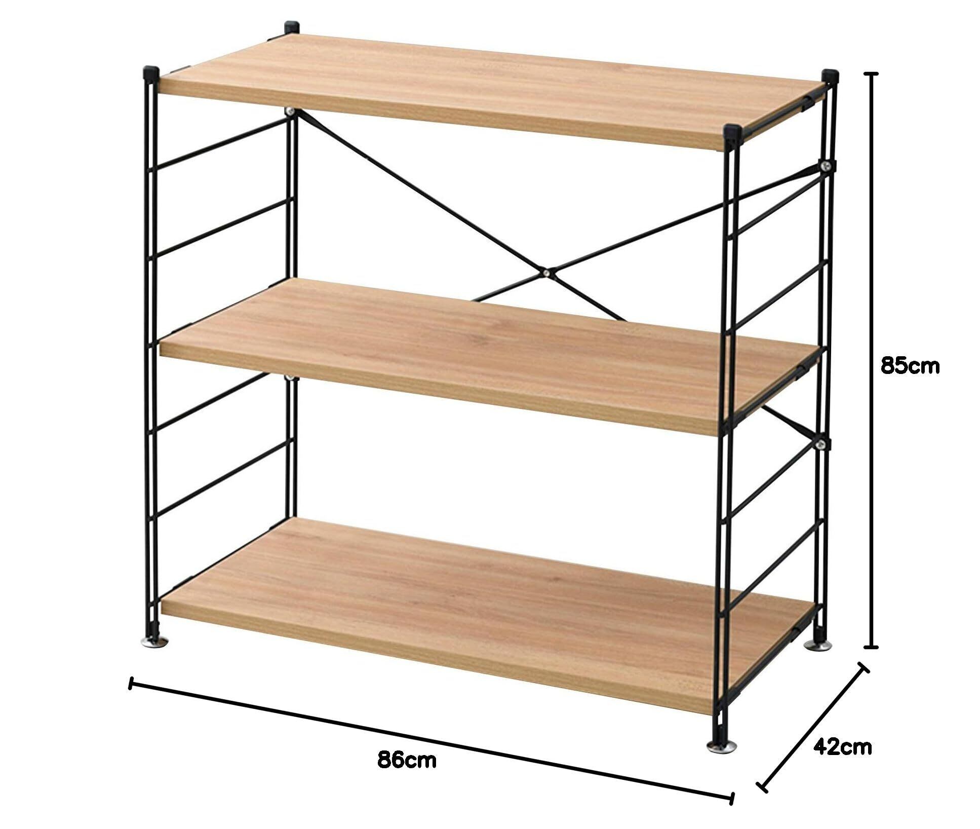 山善(YAMAZEN) ラック オープンシェルフ 幅85.5×奥行41.5×高さ85cm 3段 連結可能 簡単高さ調節 耐荷重約25kg(棚板1枚あたり) 組立品 オークサンドブラック MWS-80843(OAK/SBK)