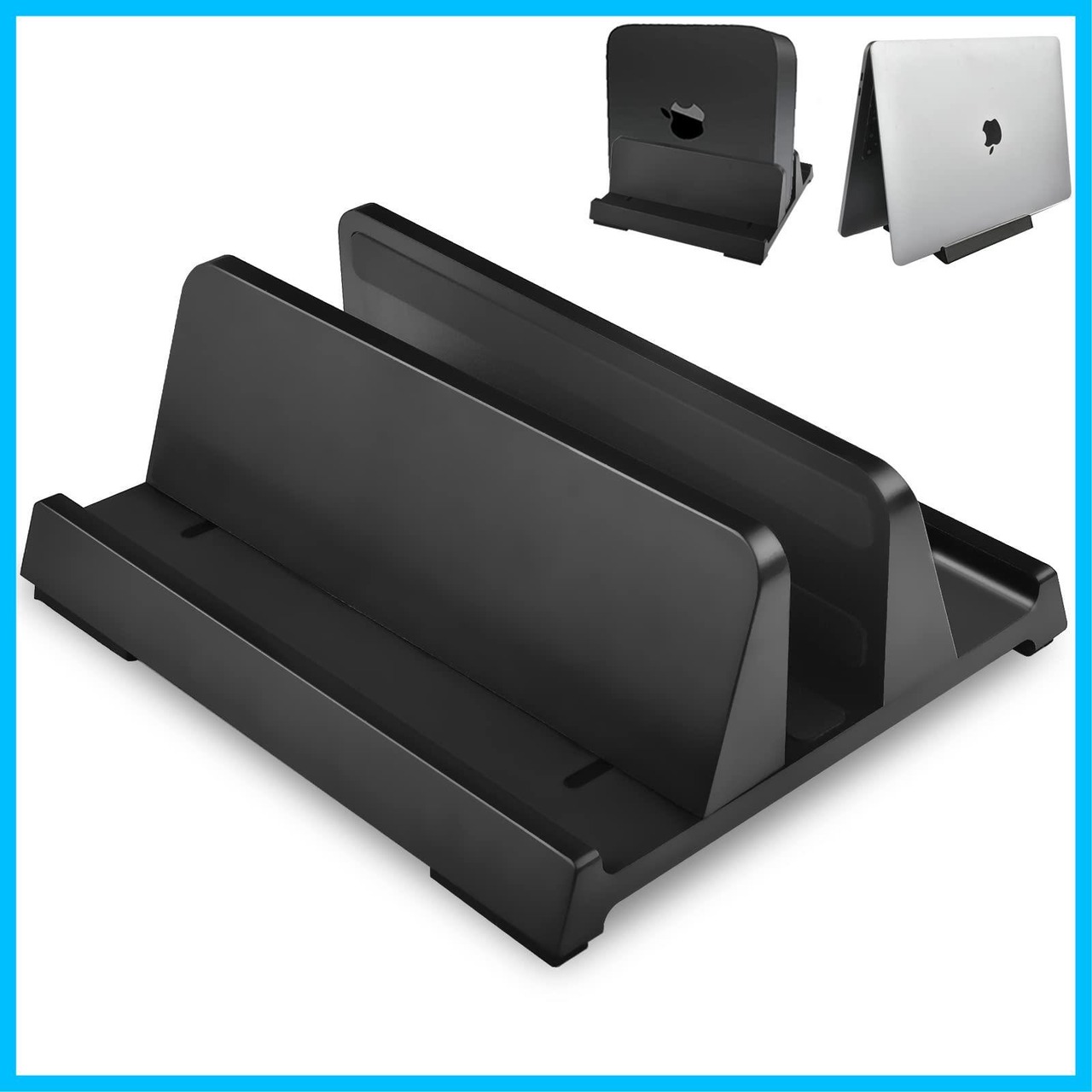 SAPASLIFE ノートパソコンスタンド 縦置き ノートPC ホルダー 机 ABS樹脂製 傷つかない 電波干渉なし 複数の台同時収納 整理 省スペース ホルダー幅調節可能 滑り止め 安定 Vertical Laptop Stand for Macbook Ipad Iphone Microsoft Surface キーボード 同時収納 日本語取扱説明書付き (1台収納, Black)