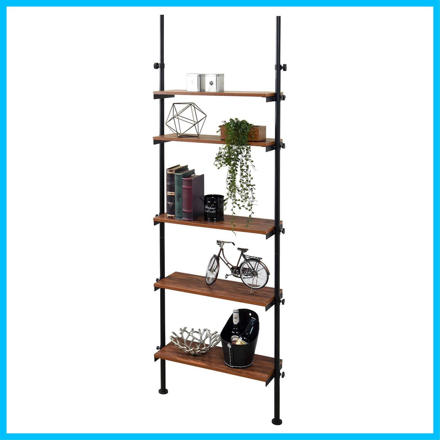 【新着商品】萩原(Hagihara) オープンシェルフ ラック 突っ張り 【木目調棚】 5段 幅70 無段階調節 ブラウン×ブラック KTR-3155BR