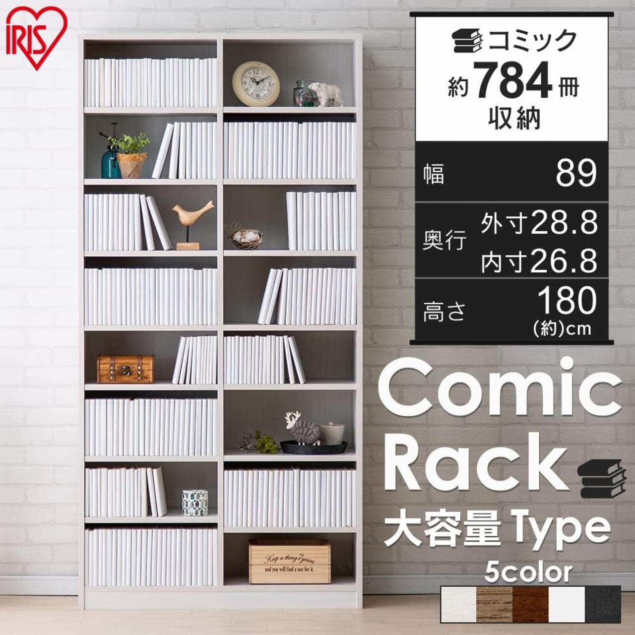 アイリスオーヤマ 本棚 幅89×奥行28.8×高さ180.0㎝ 8段 棚板可動 オープンラック 大容量 組立品 オフホワイト CORK-1890