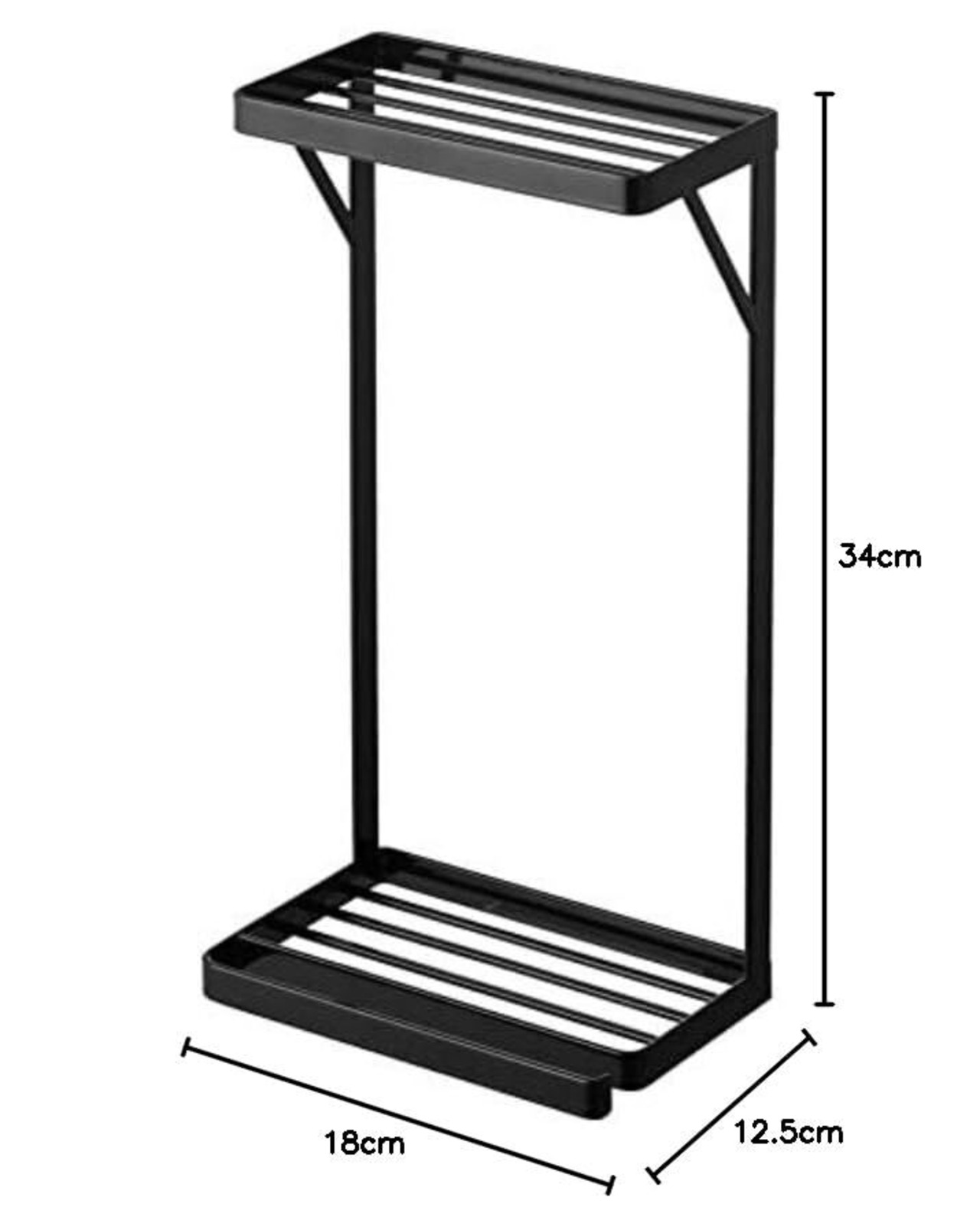 商品サイズ:約W18×D12.5×H34cm ・内寸:各棚:約W17.5×D9cm(下段H31cm) タオルハンガー部:約W17.5×D2cm