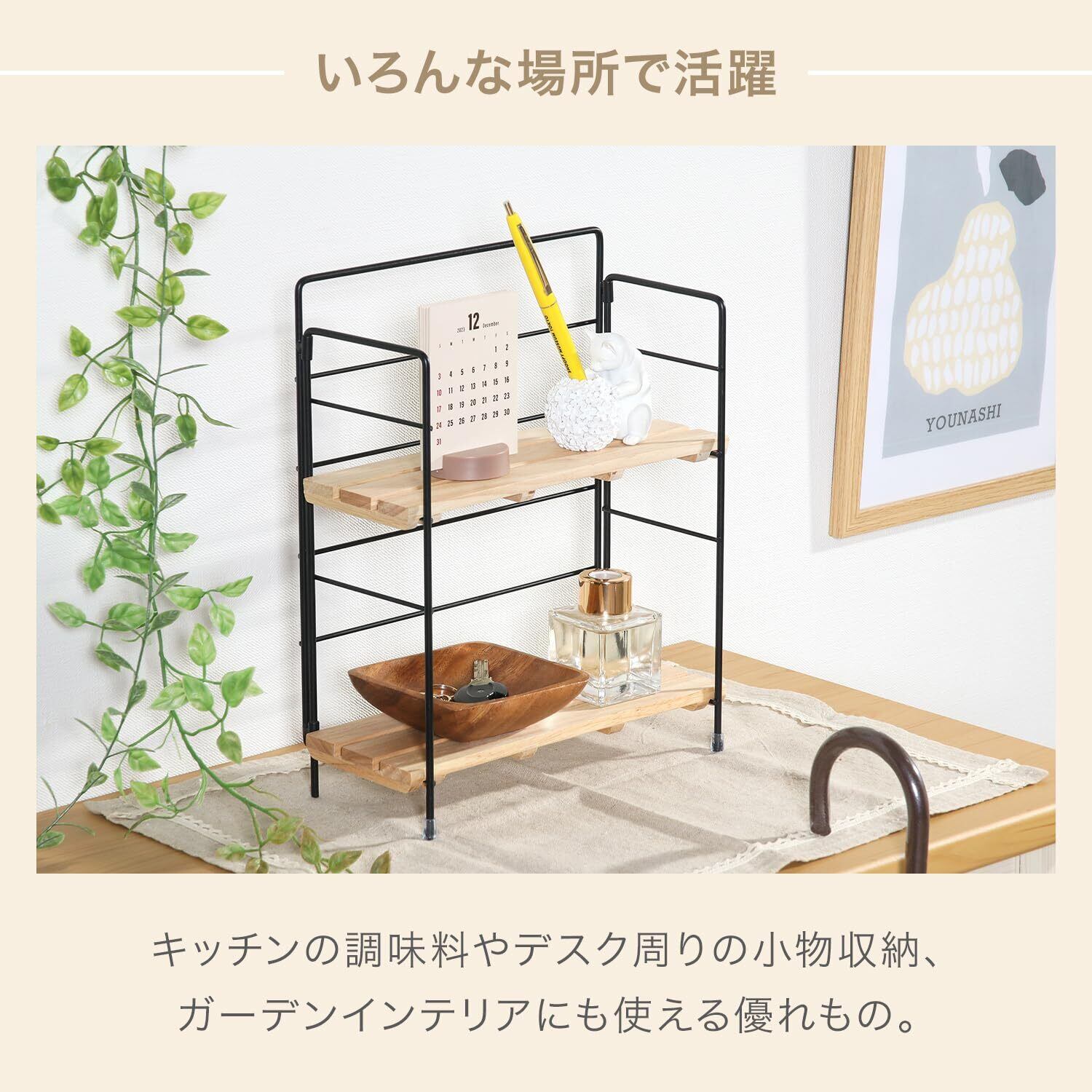 不二貿易 ミニシェルフ 収納棚 幅24×奥行10.5×高さ29.5cm ブラック×ナチュラル インテリアラック 折りたたみ 55002