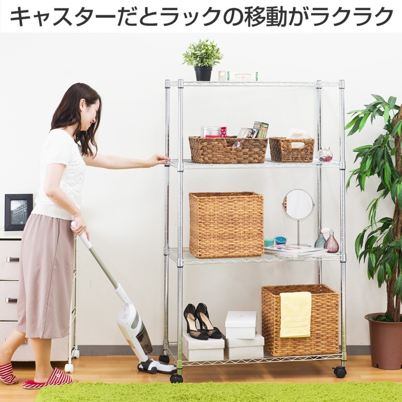 ●ラックの移動に便利なキャスターや、安定性がアップする三角プレート脚、円形アジャスターがあります