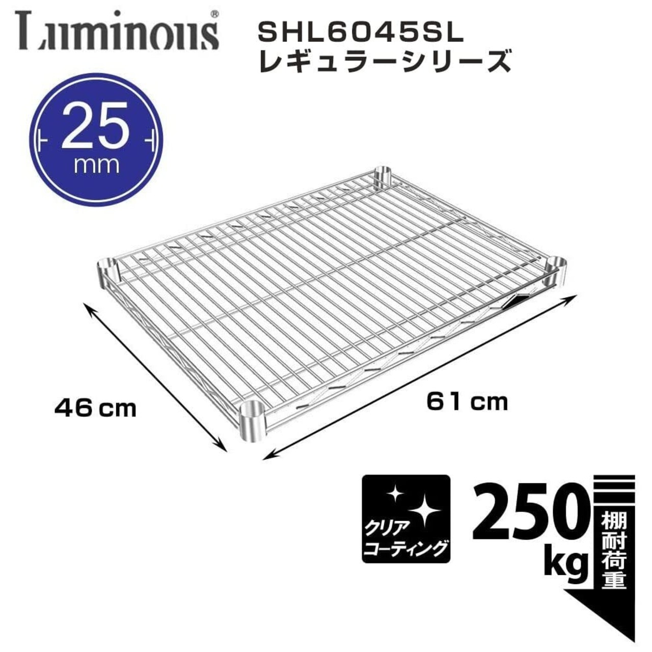 【在庫セール】ドウシシャ ルミナスレギュラー スチールラックパーツ スチール棚板 幅61×奥行46cm SHL6045SL スリーブ4個付き 耐荷重250kg 頑丈 業務用 スチールシェルフ 追加棚板 天板 防錆加工 ポール径25mm 幅60 奥行45モデル