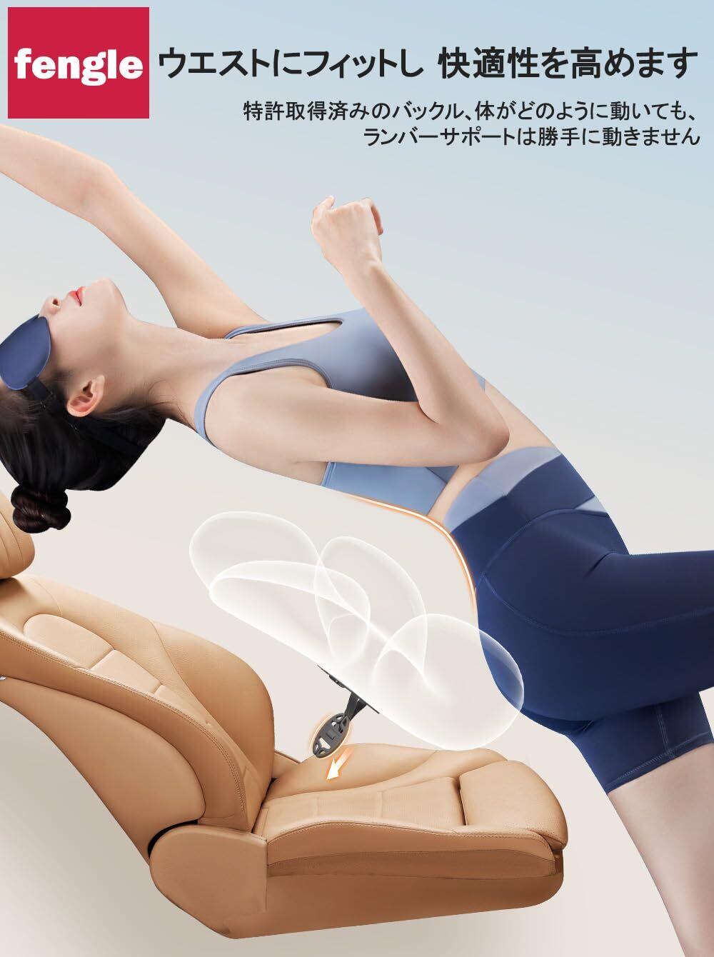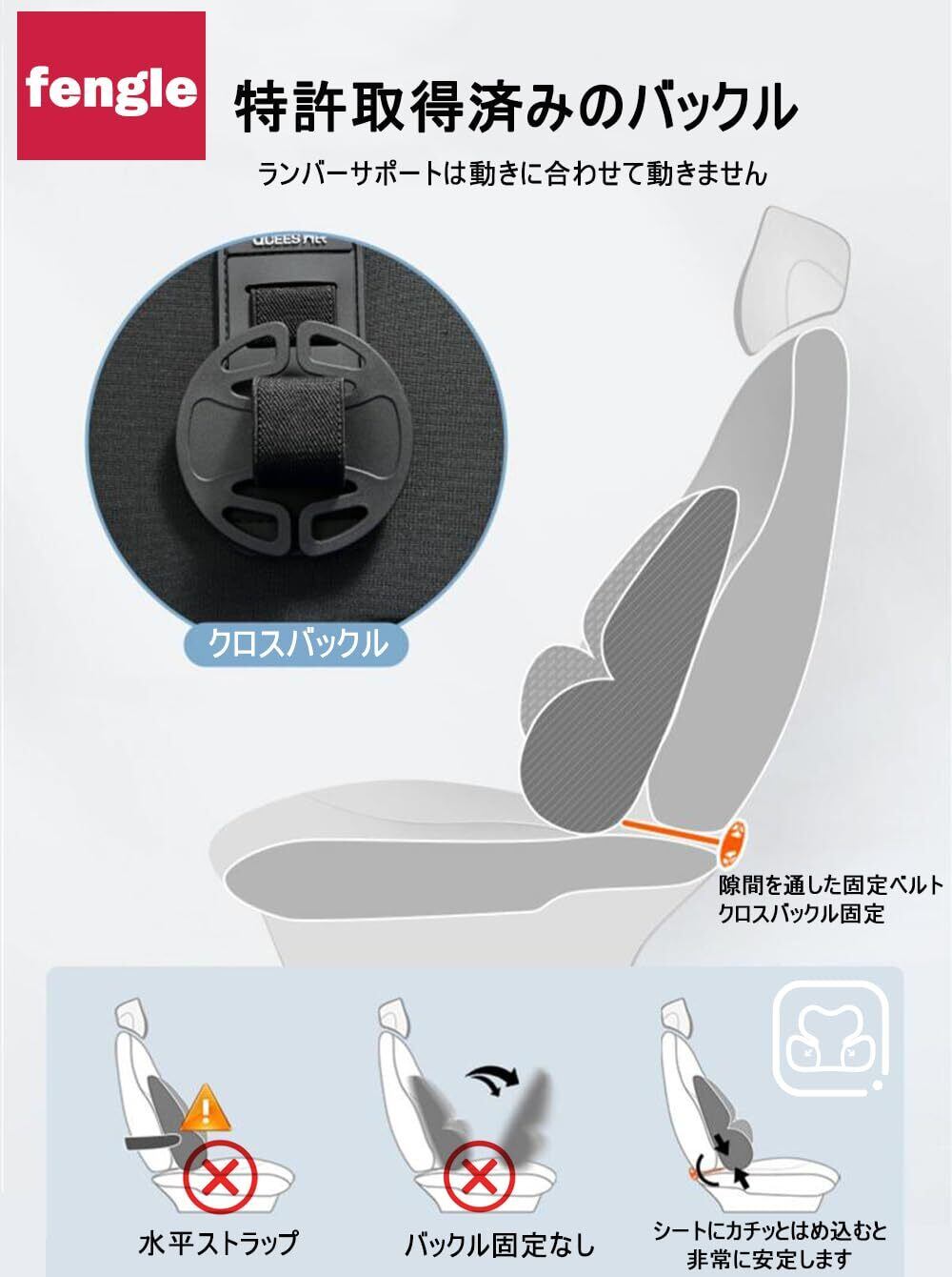 【特許取得済みのバックル】隙間を通した固定ベルトクロスバックル固定、シートにカチッとはめ込むと非常に安定します、腰部サポートは人の動きに合わせて動きません。ゴムバンドを引っ張ってマジックテープで固定するだけでお楽しみ 頂け。取り付けが苦手な方でも手軽に装着できます。使わないときは取外しも簡単、耐久性があり、頻繁に運転する人に最適です。