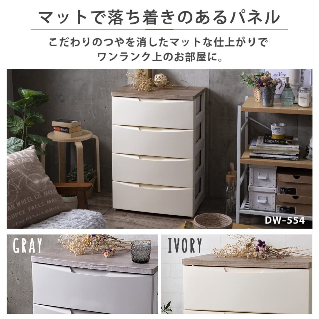 アイリスオーヤマ チェスト 4段 届いてすぐ使える完成品 日本製 デザイン 木天板 幅56×奥行42×高さ81㎝ アイボリー DW-554 組立不要