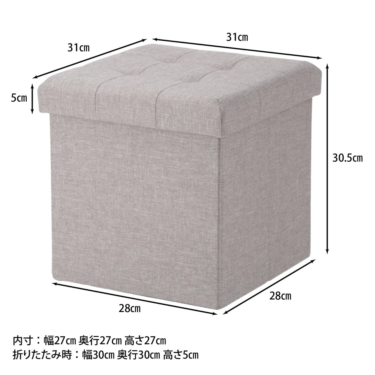 不二貿易 収納スツール 収納ボックス 幅31×奥行31×高さ30.5cm ライトグレー オットマン 耐荷重80kg 折りたたみ ボックススツール ハント 85991
