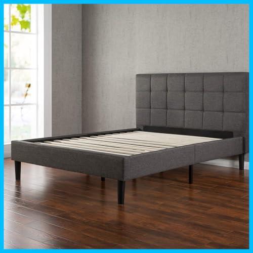 ZINUS Lottie ファブリックベッドフレーム 組立簡単工具付き セミダブル ダークグレー スクエア柄 木製 すのこ 静音 布張り 耐久性 通気性 頑丈 | 日本正規品 FSPB