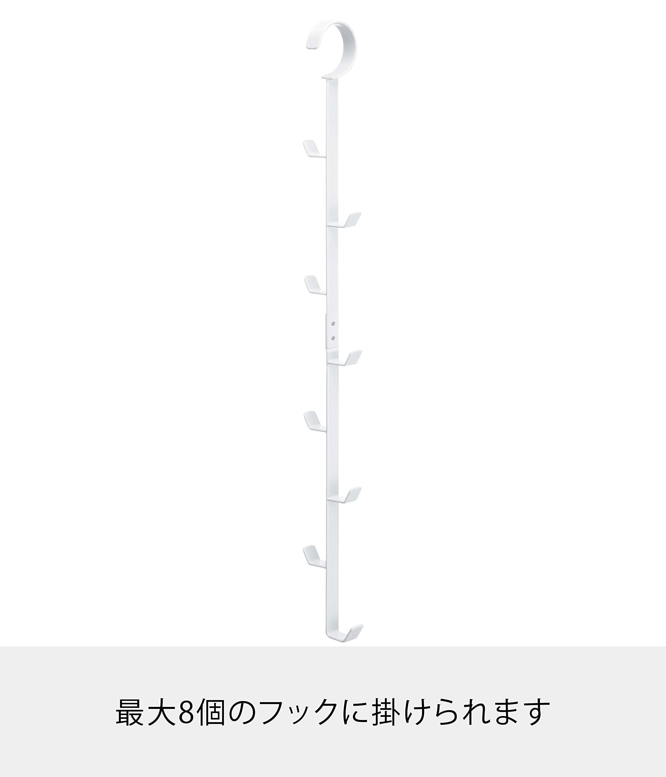 散らかりがちなバッグや帽子もクローゼットにまとめて収納。帽子・鞄・小物類をスリムに一括収納!クローゼットのパイプに掛けるだけの簡単設置です。縦に複数かけられるスリムタイプ。クローゼットにも馴染むスマートなデザインです。 ■サイズ:幅6×奥行5×高さ54cm■材質:本体/スチール(粉体塗装)■重量:230g■原産国:Made in China■備考:耐荷重/フック1つにつき約1kg