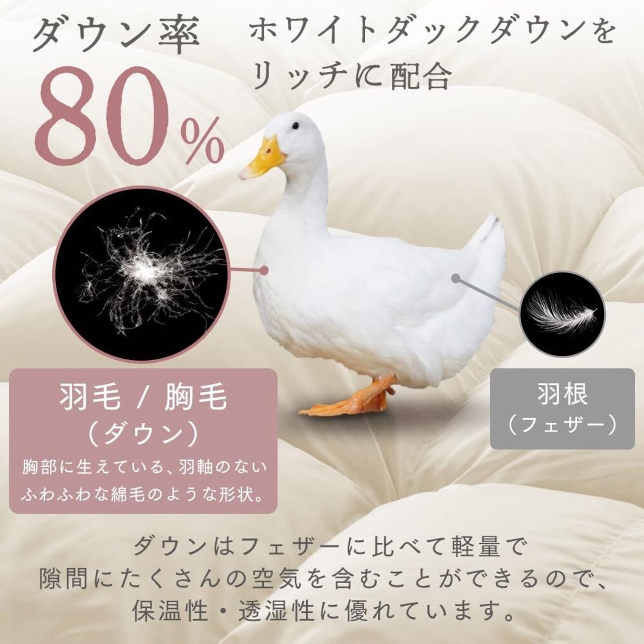 【数量限定】アイリスプラザ 羽毛布団 ホワイトダックダウン80% シングル 羽毛パワーアップ加工済 ホワイトダックダウンをリッチに配合 自宅洗濯OK お手入れ簡単 グレー