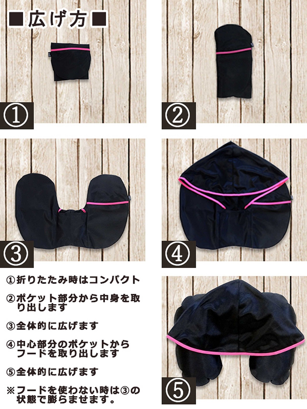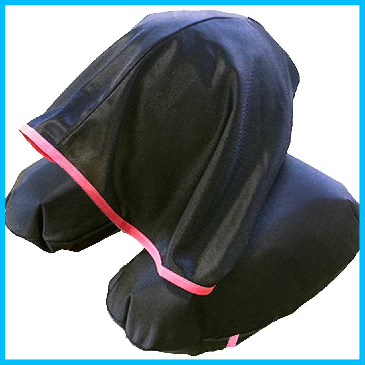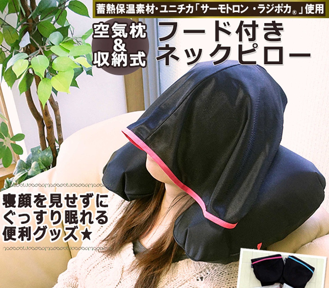 寝顔を見せずにぐっすり眠れる 安眠 フード付き ネックピロー 日本製 ブラック×ピンク