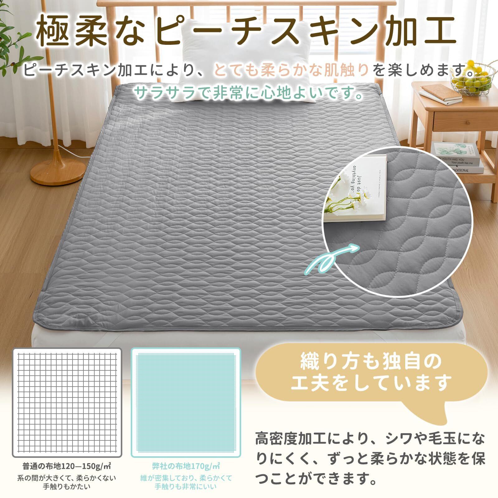 【お肌にやさしい心地】肌に優しい表地は通気性がよく、汗をかいても水分が素早く吸収し、すぐに乾きます。汗をかきやすい夏も快適な使い心地。吸水性と通気性に優れた素材のため、敷きパッドは汗などの水分をたっぷり吸収し、速乾してさらっと快適にお使いいただけます。蒸し暑い夏や、季節の変わり目に活躍します。