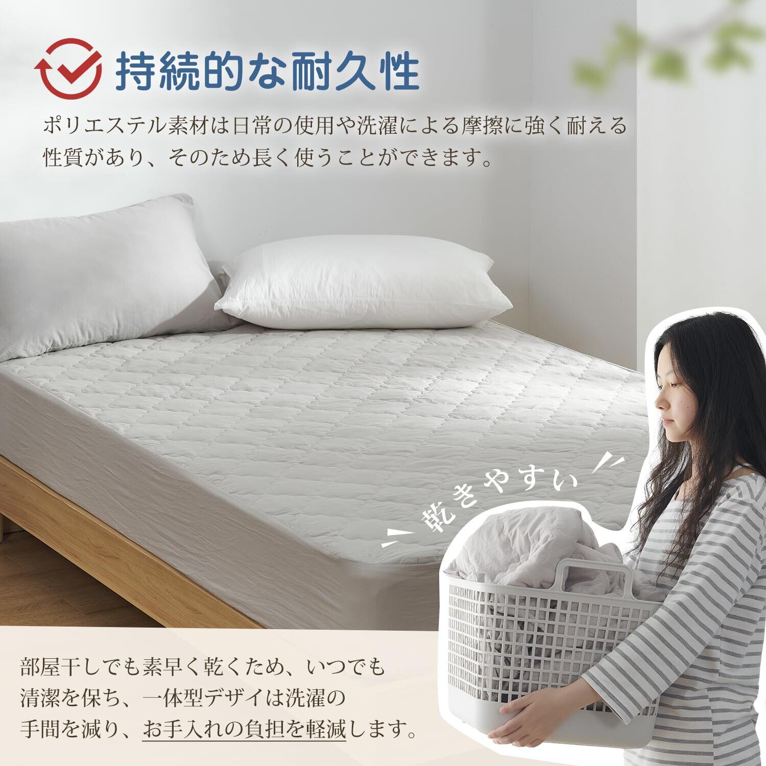 敷きパッドとボックスシーツが一体化している:敷きパッドとボックスシーツが一体化しており、装着が簡単で便利です。