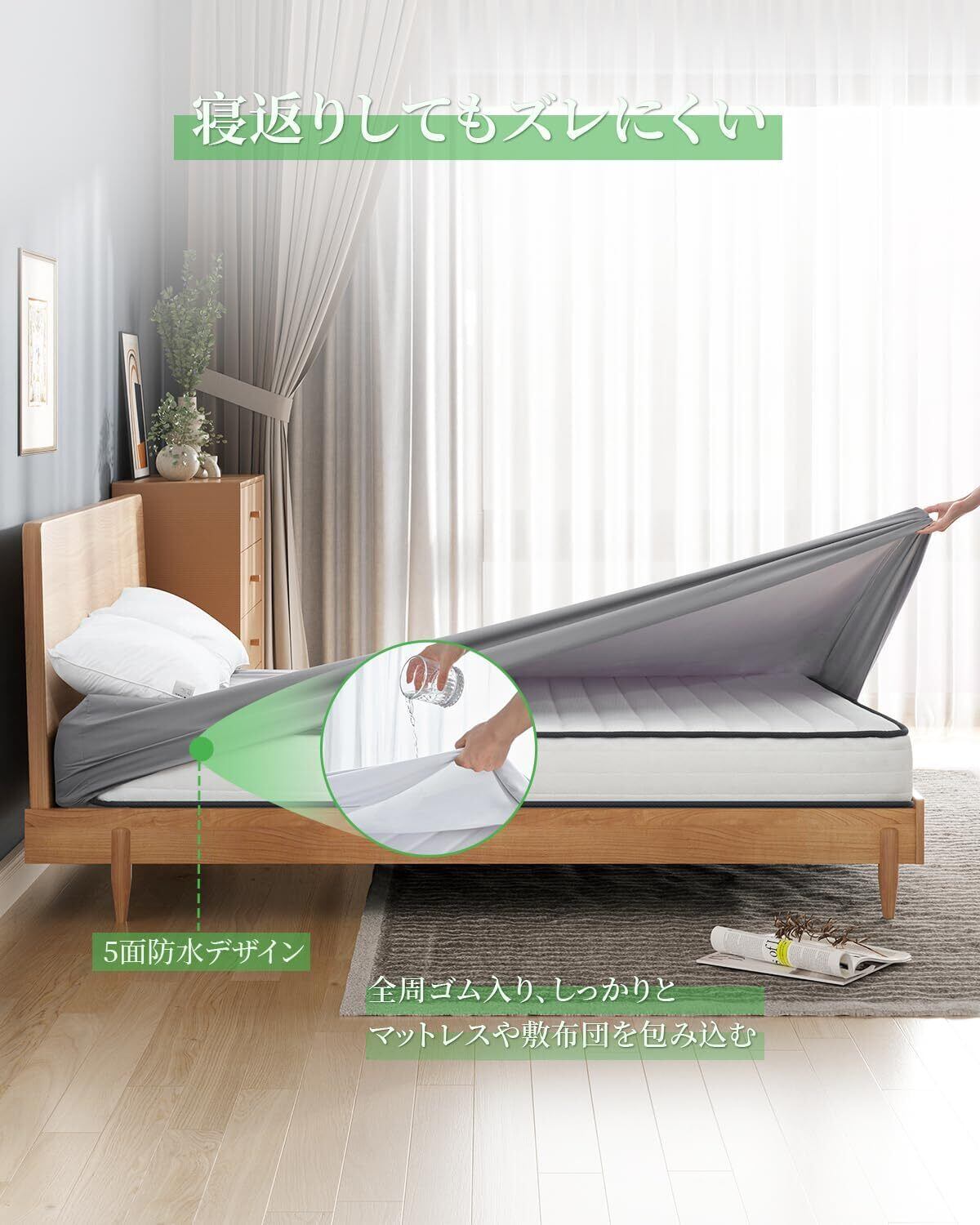 Z-HOM 防水シーツ 側面完全防水 ダブル ボックス ボックスシーツ セミダブル クイーン マットレスカバー ベッドシーツ 防ダニ 丸洗い可能 大人用 赤ちゃん おねしょ 介護用(ライトグレー ゼミダブルサイズ)
