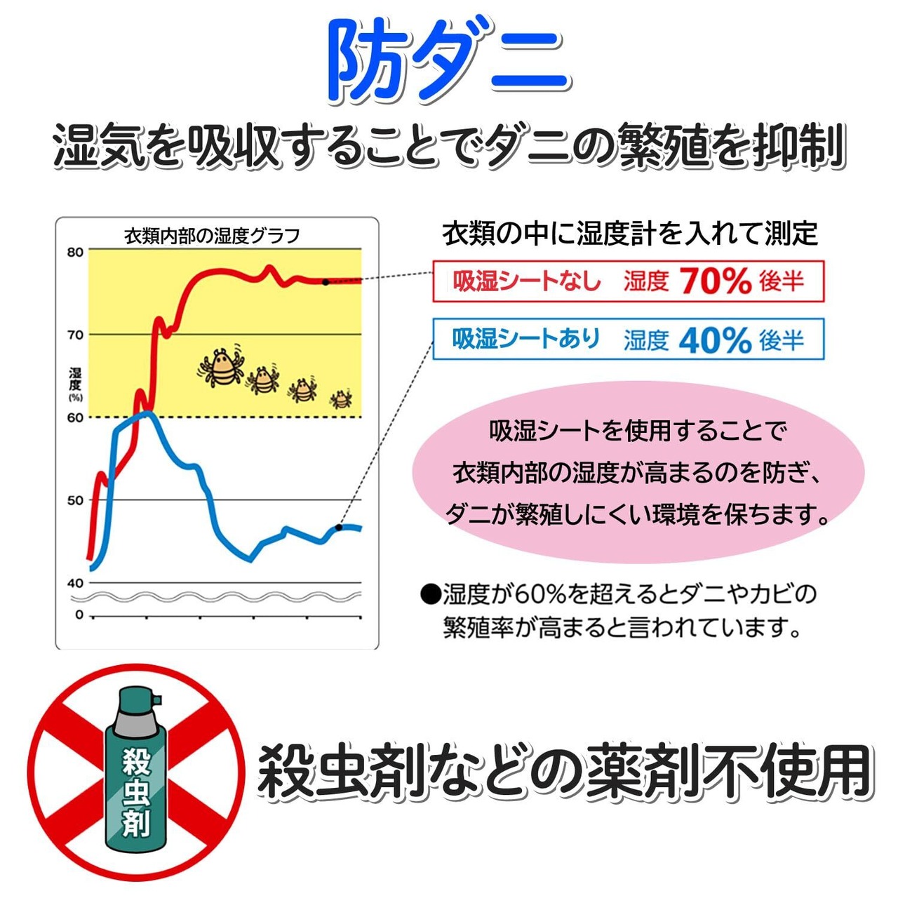 【防臭しながら除湿してダニの繁殖を抑制】:湿気を吸収することでダニの繁殖を抑制。湿気を取りながら防ダニ効果を発揮し衣類を大切に保管できる。