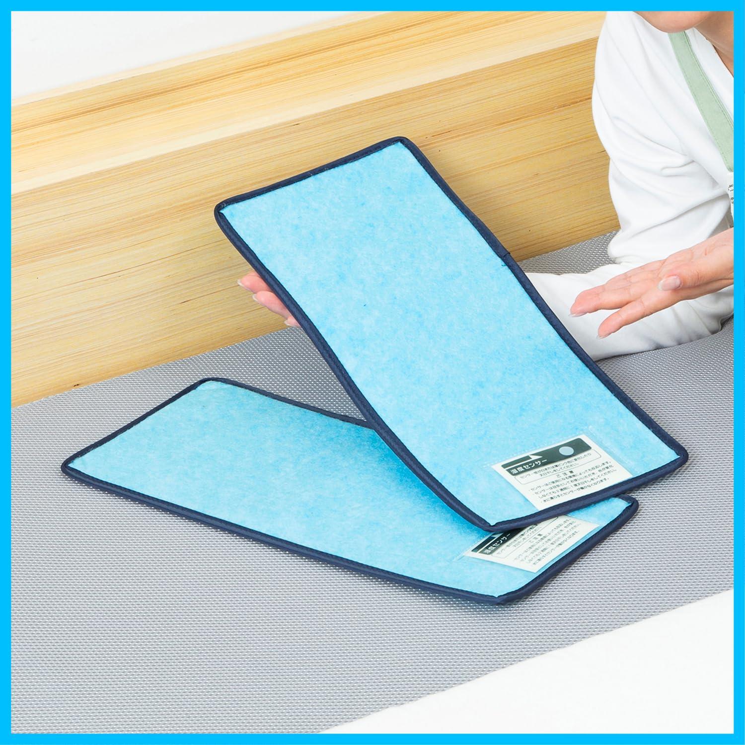 【商品仕様】:サイズ/約18×40cm、カラー/ライトブルー、内容/2枚、材質/ポリエステル80%・合成繊維(アクリレート系)20%[ポリエステルの内の13%は抗菌防臭効果のある繊維を使用]