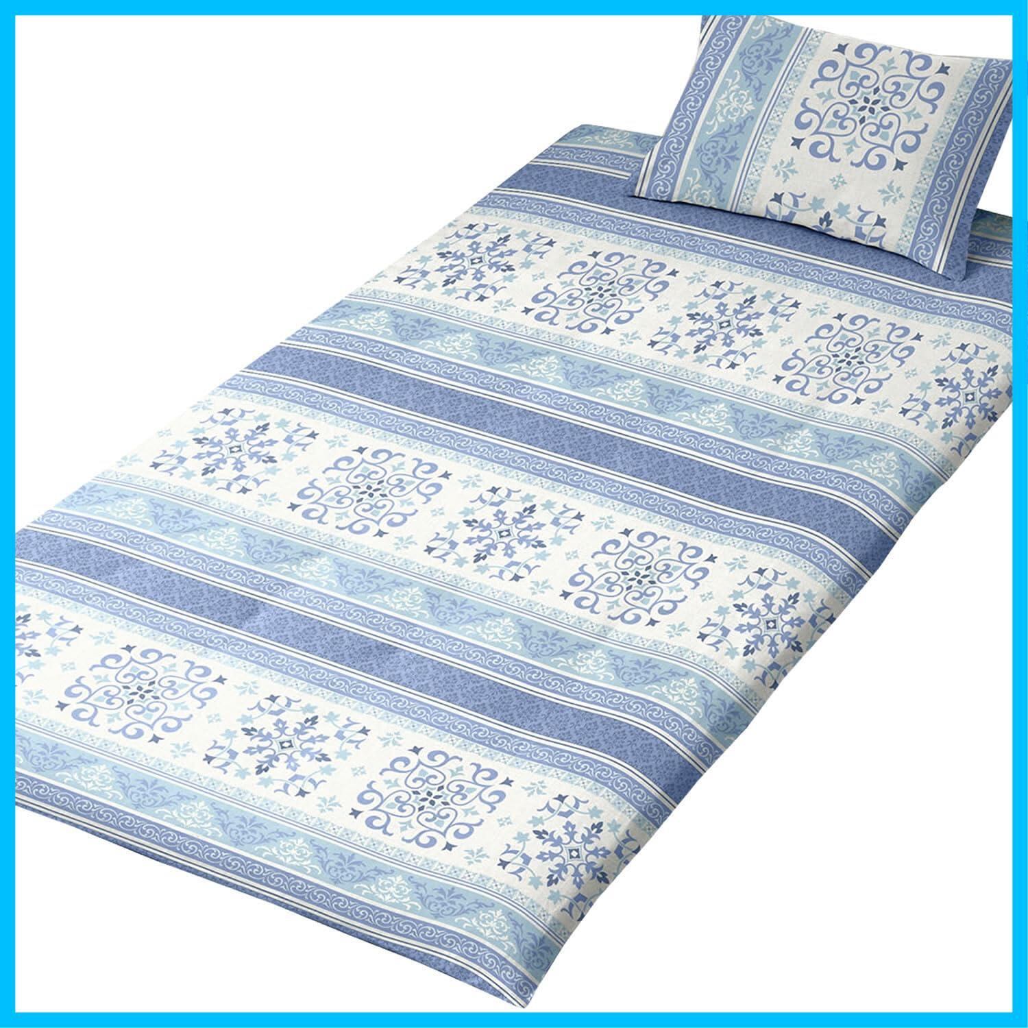 メリーナイト 大きく開いて ふとんが入れやすい 敷布団カバー 「エスニック/ギンガムチェック」 サックスブルー シングルロング 約105×215cm リバーシブル仕様 両面使える 着脱簡単 L字ファスナー 綿混素材 速乾 シワになりにくい 洗える 衛生 清潔 オールシーズン MN13153-76