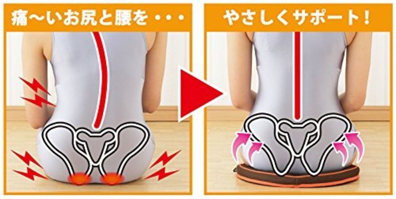長時間座ってもお尻と腰に優しい携帯円座クッション。高反発ウレタンと低反発ウレタンの二層構造でお尻を包み込むのでへたりにくいです。