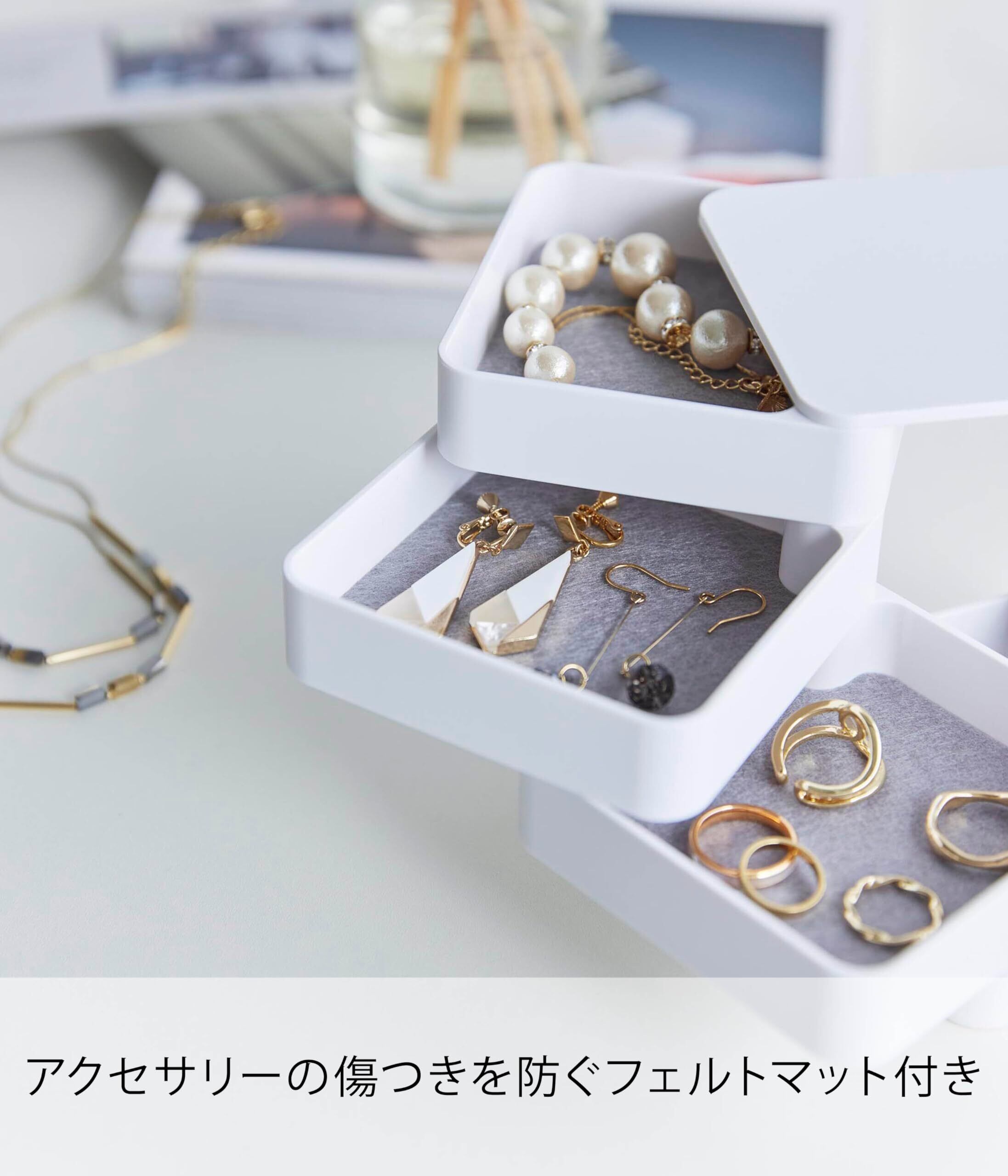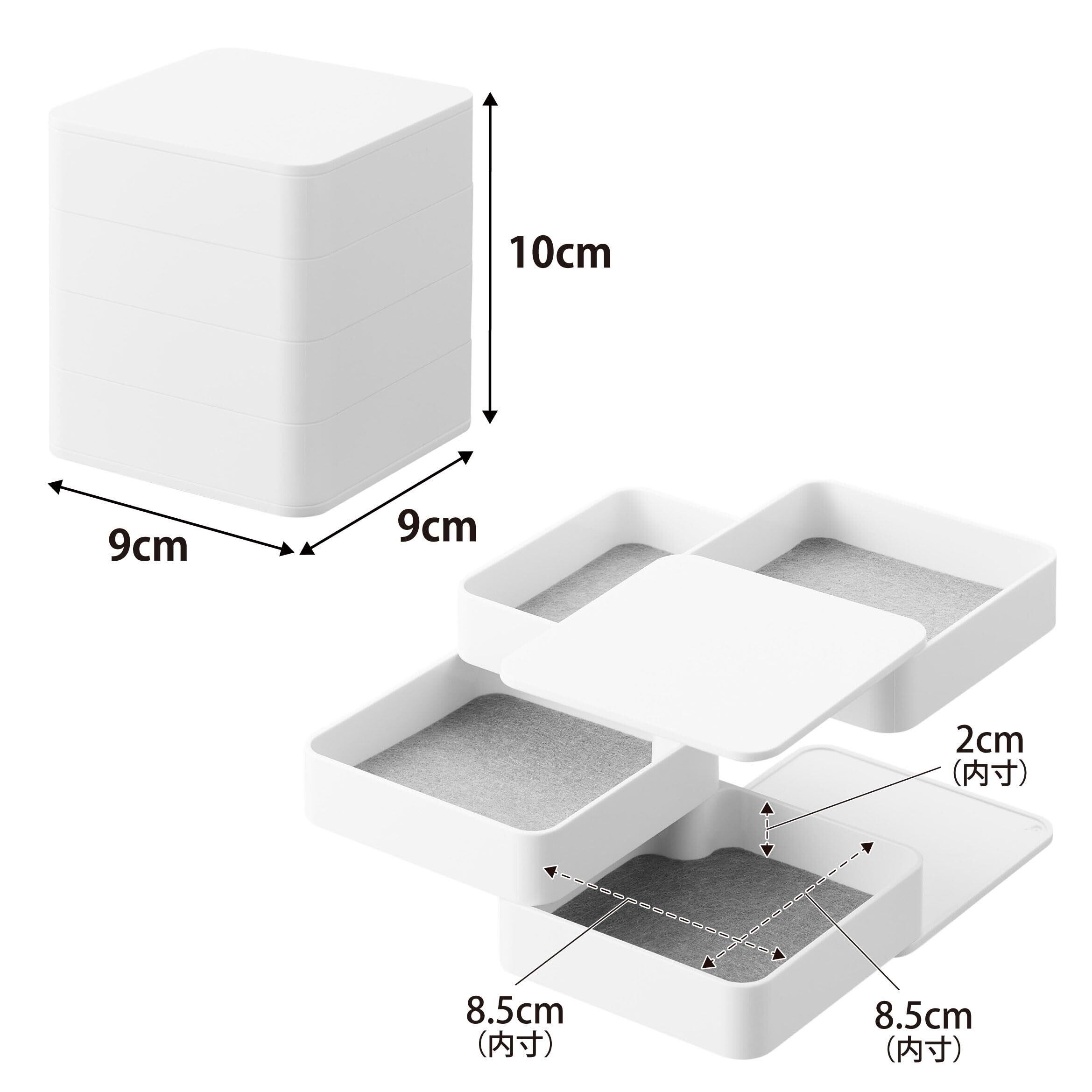 回転式で取り出しやすいスクエア型アクセサリートレー4段。